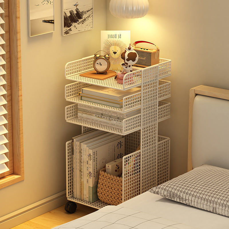 Modern Minimalist Square Rectangular Iron Movable Nightstand 3/4-Tier For Bedroom