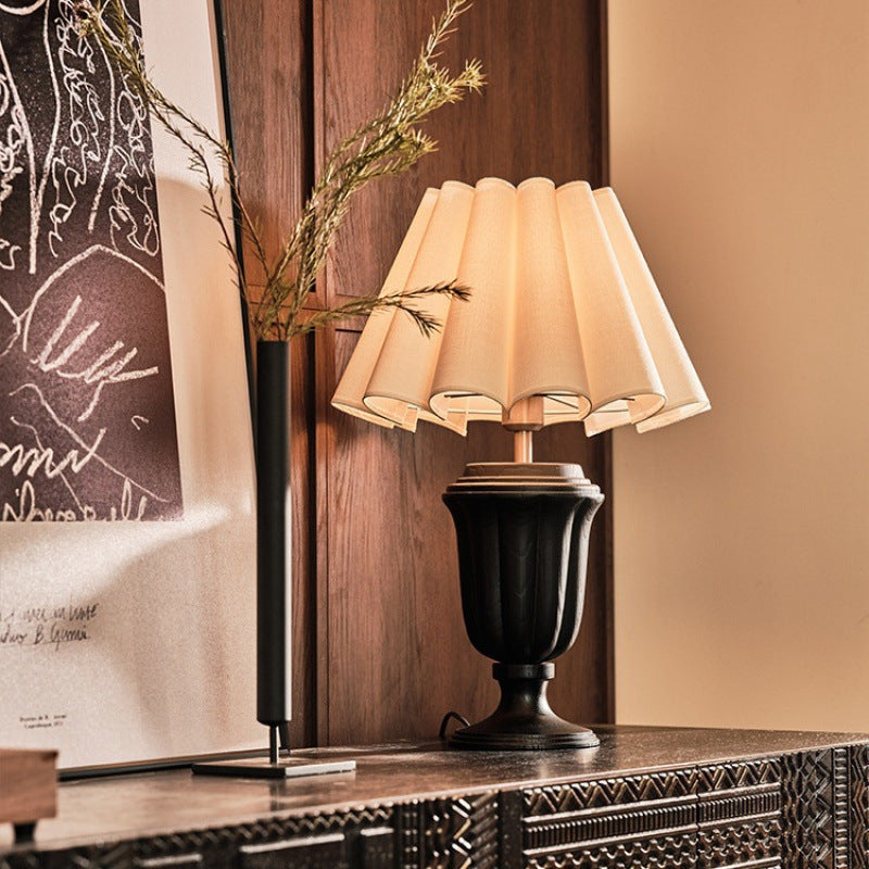 Traditionelle Vintage Stoffblumenstrauß-Lampenschirm Massivholz 1-Licht Tischlampe für Schlafzimmer