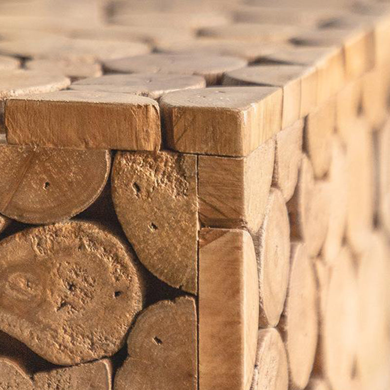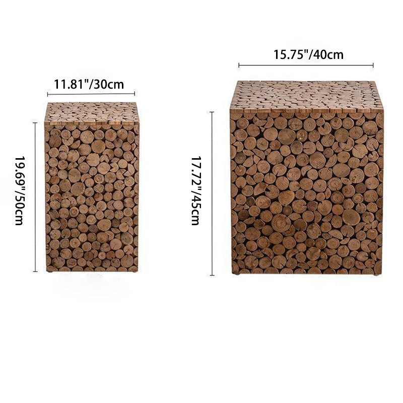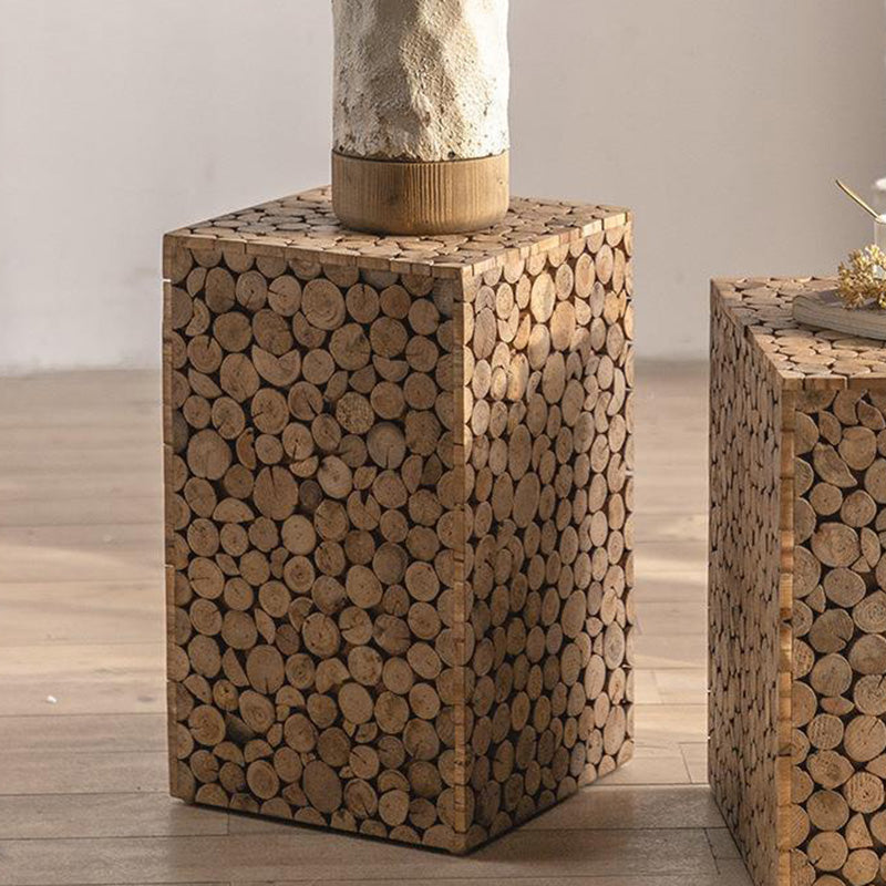 Traditioneller Vintage Geometrischer Quader Massivholz Beistelltisch für Wohnzimmer