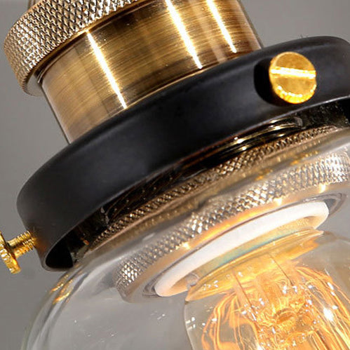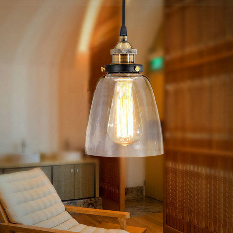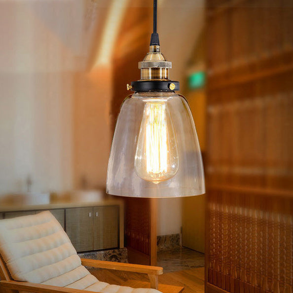 Diese traditionelle Vintage-Pendelleuchte verfügt über ein verstellbares Kabel, das Vielseitigkeit für Ihren Raum bietet. Ihr rundes, becherförmiges Glas- und Metalldesign verleiht jeder Schlafzimmerdekoration einen rustikalen Touch.