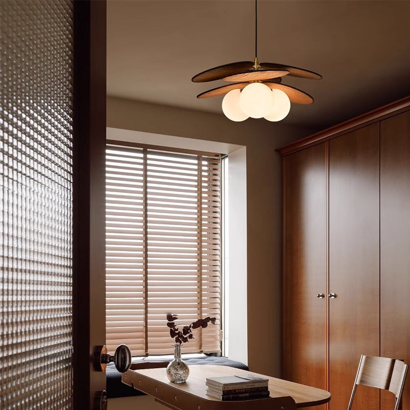 Dieser retro-inspirierte Kronleuchter verfügt über ein handgefertigtes Raffia- und Glas-Oval-Globus-Design in einem warmen Walnuss-Ton, perfekt für Schlafzimmer, Essbereiche oder Treppenhäuser. Mit Optionen für 1 oder 3 Lichter verleiht er jedem Innenraum Vintage-Eleganz und natürliche Textur.