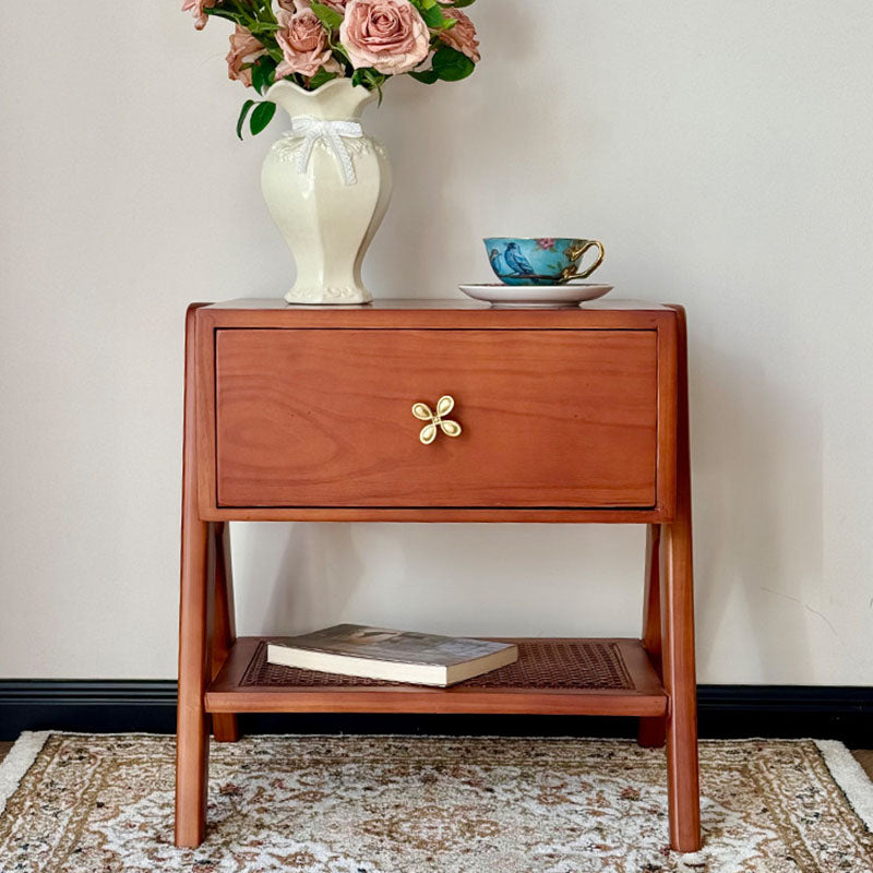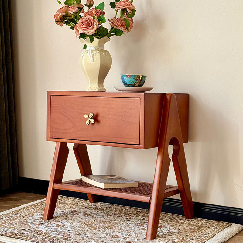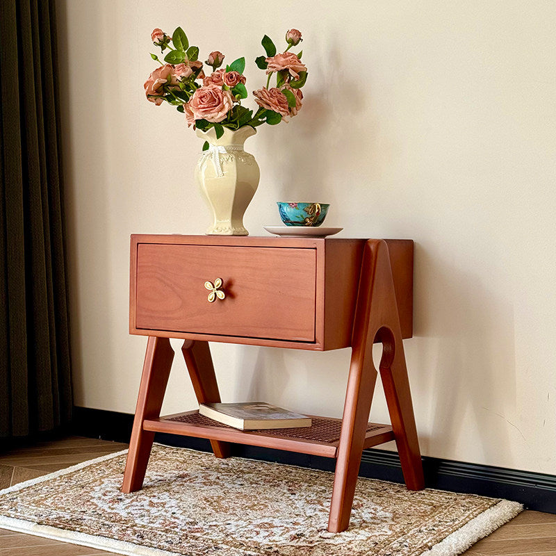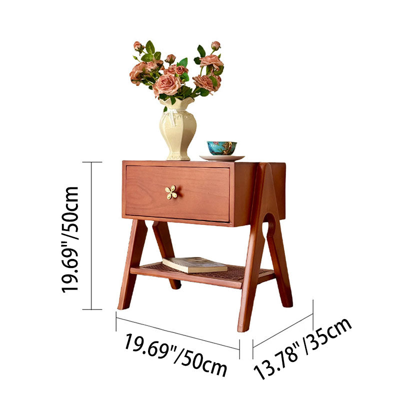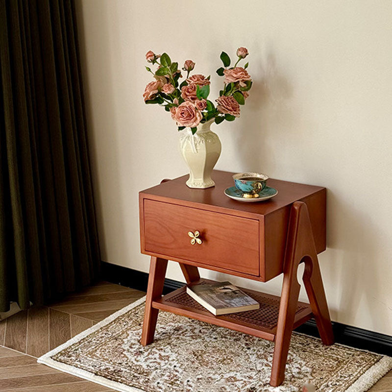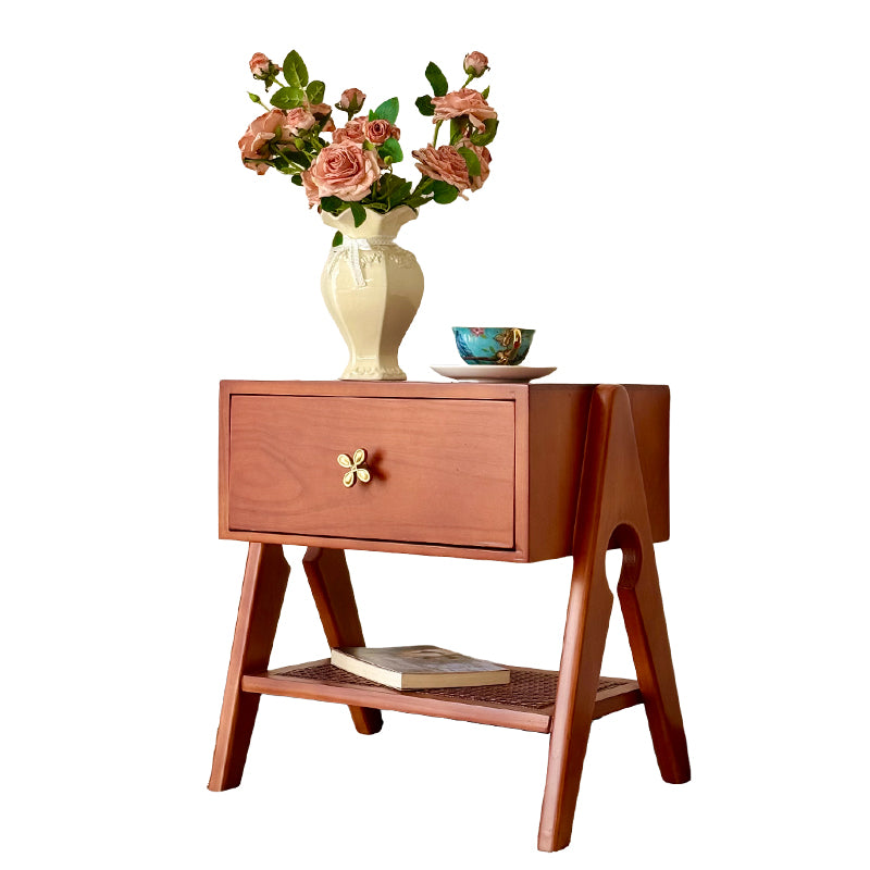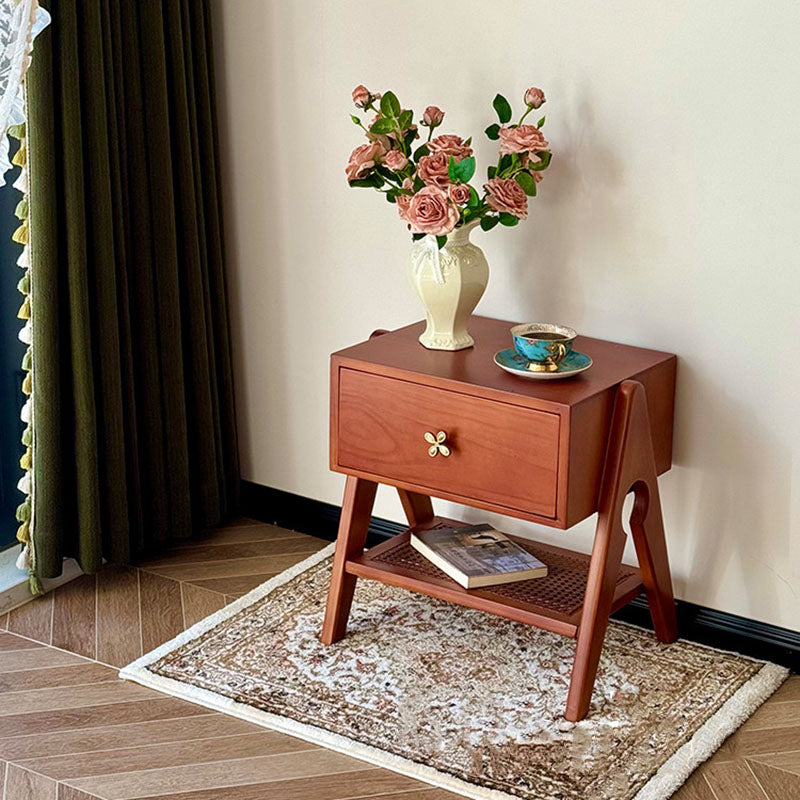Reddish Brown Traditional Retro Pine Wood Nightstand features a rectangular design and 1 convenient drawer for storage. Made of solid eco-friendly pine wood with long service life, it's perfect for organizing items in both living room and bedroom.