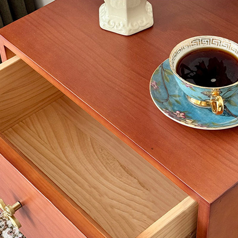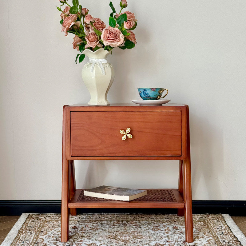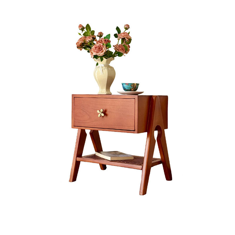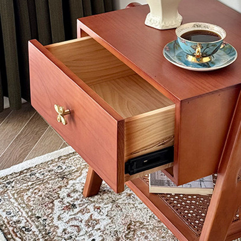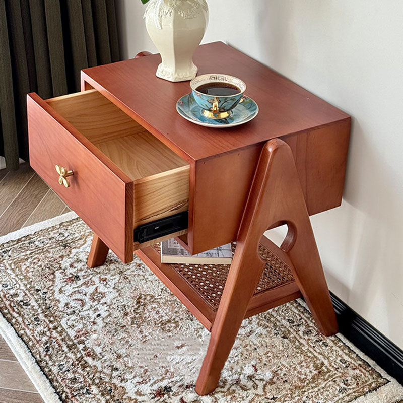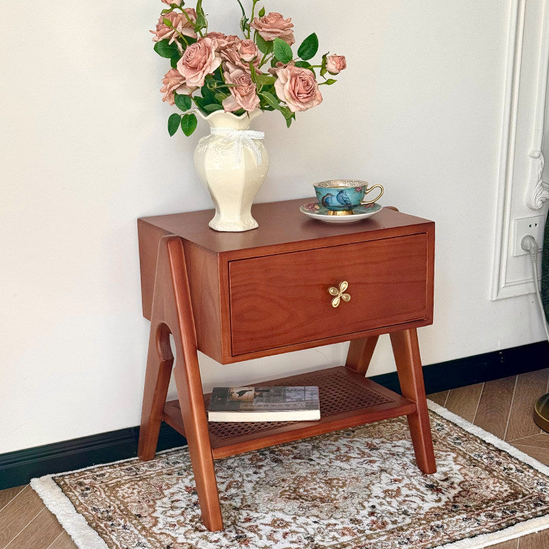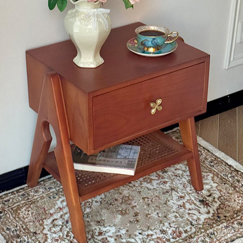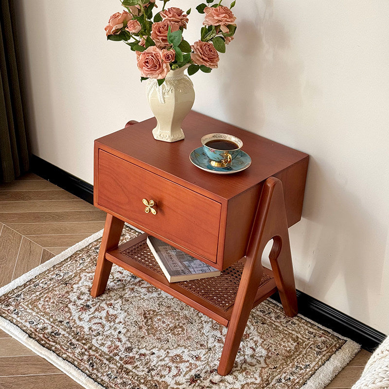 Reddish Brown Traditional Retro Pine Wood Nightstand features a rectangular design and 1 convenient drawer for storage. Made of solid eco-friendly pine wood with long service life, it's perfect for organizing items in both living room and bedroom.