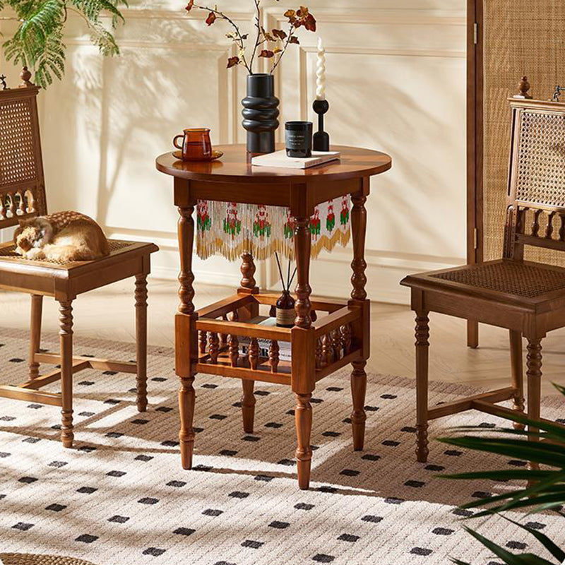 Crafted from premium solid wood, this vintage-inspired round side table blends timeless elegance with modern utility. Its rich tea-stained finish and thoughtful two-tier design offer a sophisticated storage solution, bringing both warmth and lasting durability to your living space.