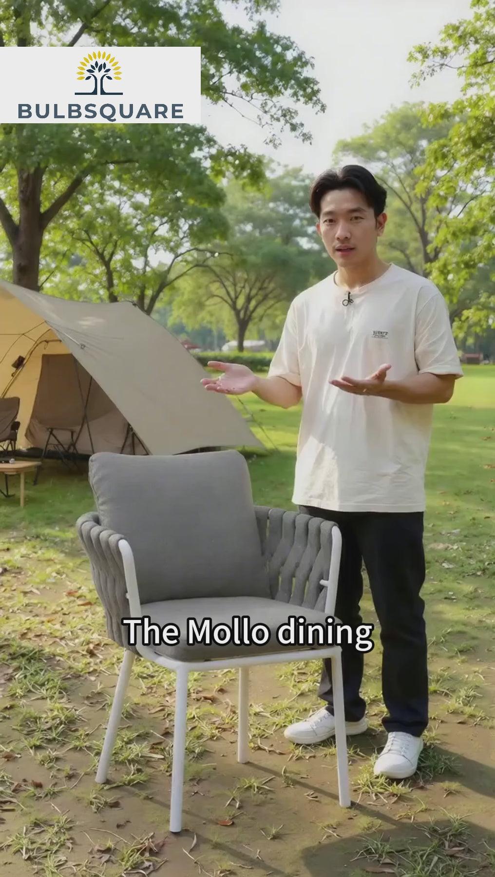 Experience effortless comfort and timeless style with this modern rope dining chair. Built with a rust-resistant aluminum frame and handwoven rope backrest, it combines durability with aesthetic appeal. The high-density foam and soft doll cotton cushions ensure plush comfort, while the water-resistant inner lining makes it ideal for both indoor and outdoor spaces. Whether for your patio, dining area, or balcony, it brings a refined touch of modern leisure to any setting.