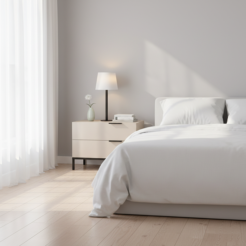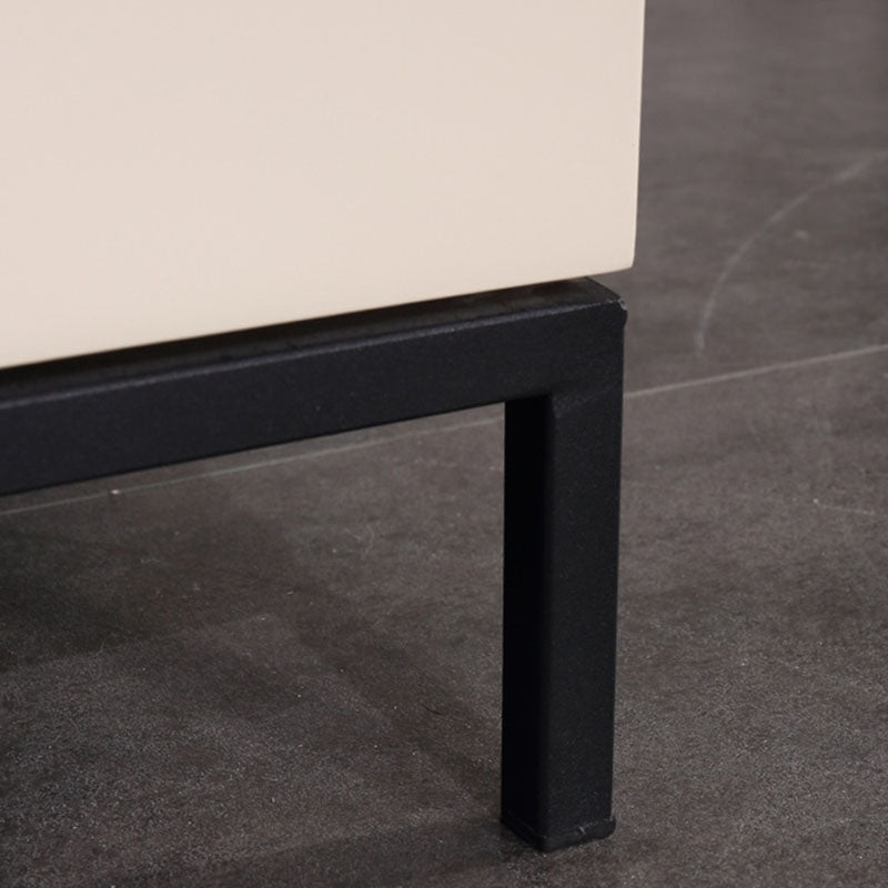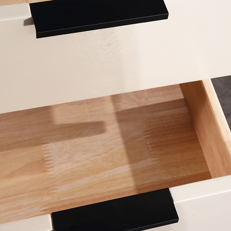 This contemporary Scandinavian-designed bedside table features an E1 eco-friendly board frame, solid wood soft-close drawers for quiet storage, iron legs, and baking paint craftsmanship, showcasing warm texture in simplicity. It's a textural choice for bedroom storage and a minimalist signature for the space, infusing Scandinavian purity and elegance into home life.