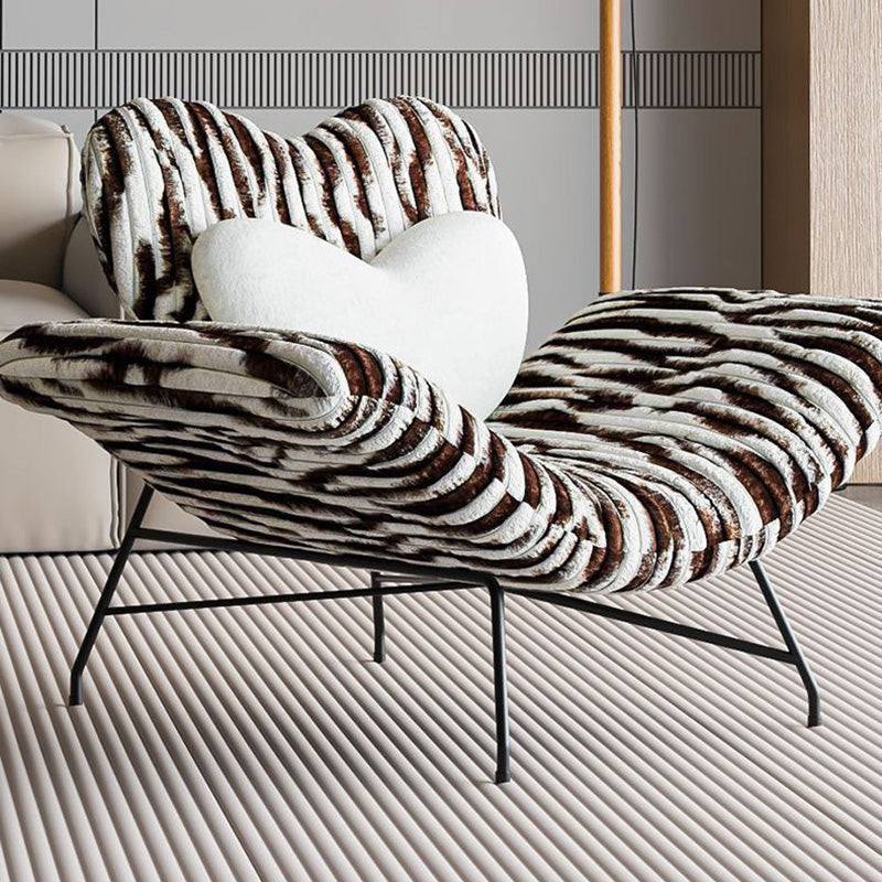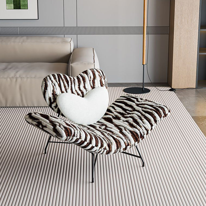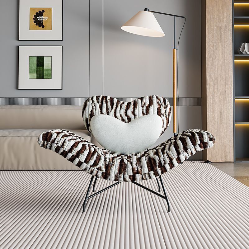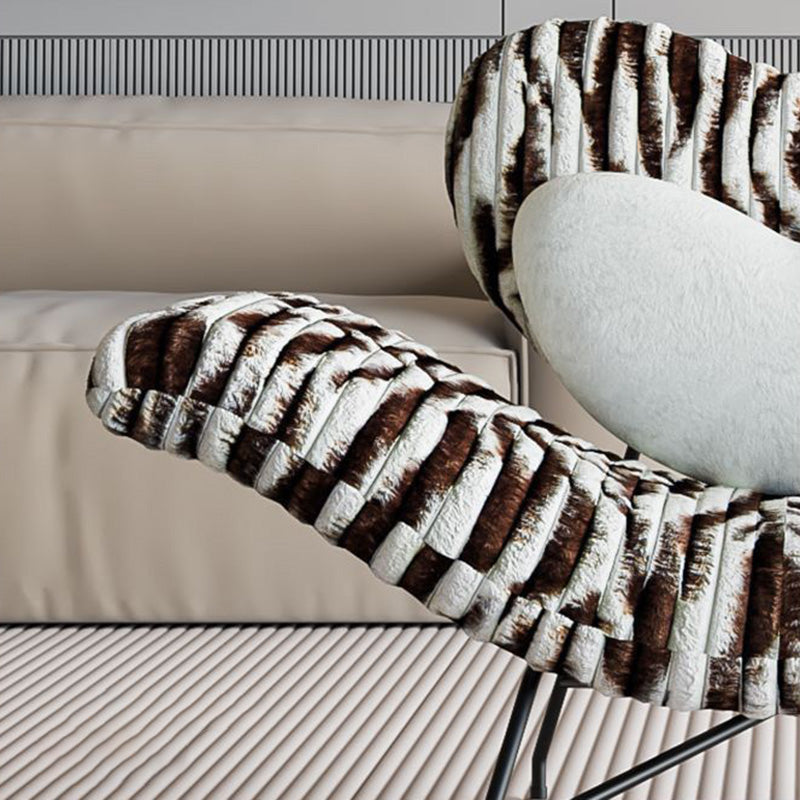 Modern Minimalist Curved Rabbit Velvet Sponge Carbon Steel Accent Chair Backrest Armrest For Living Room