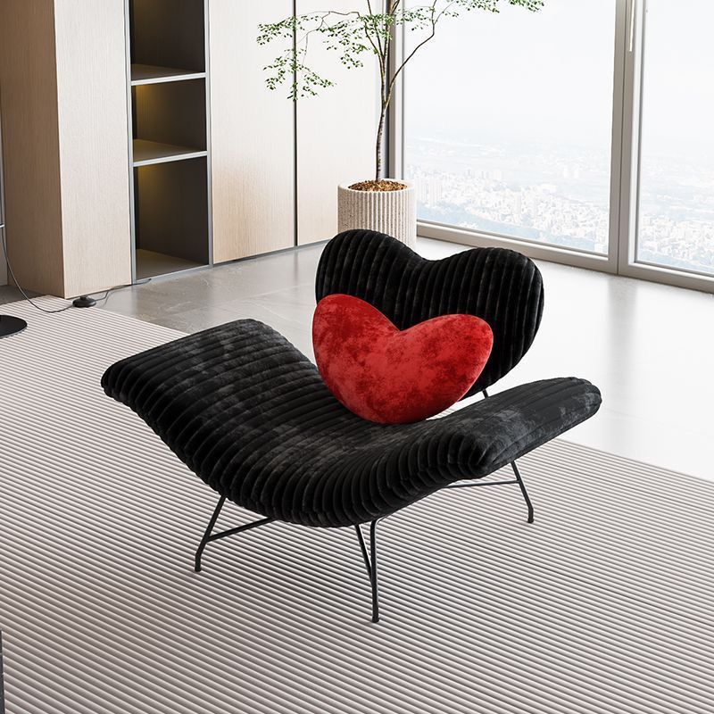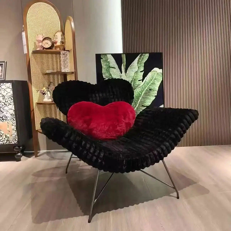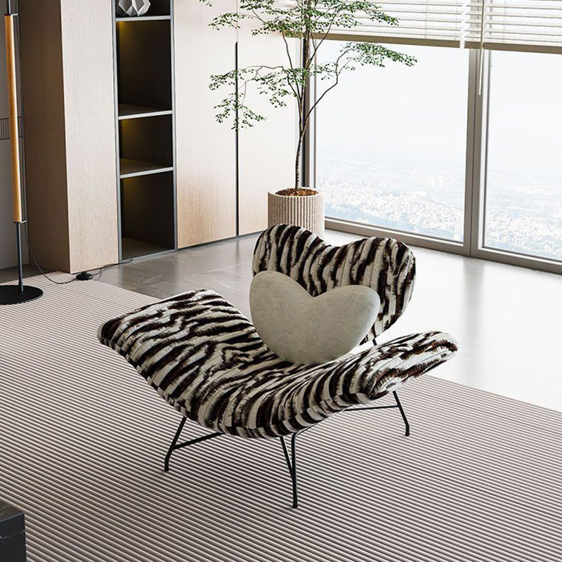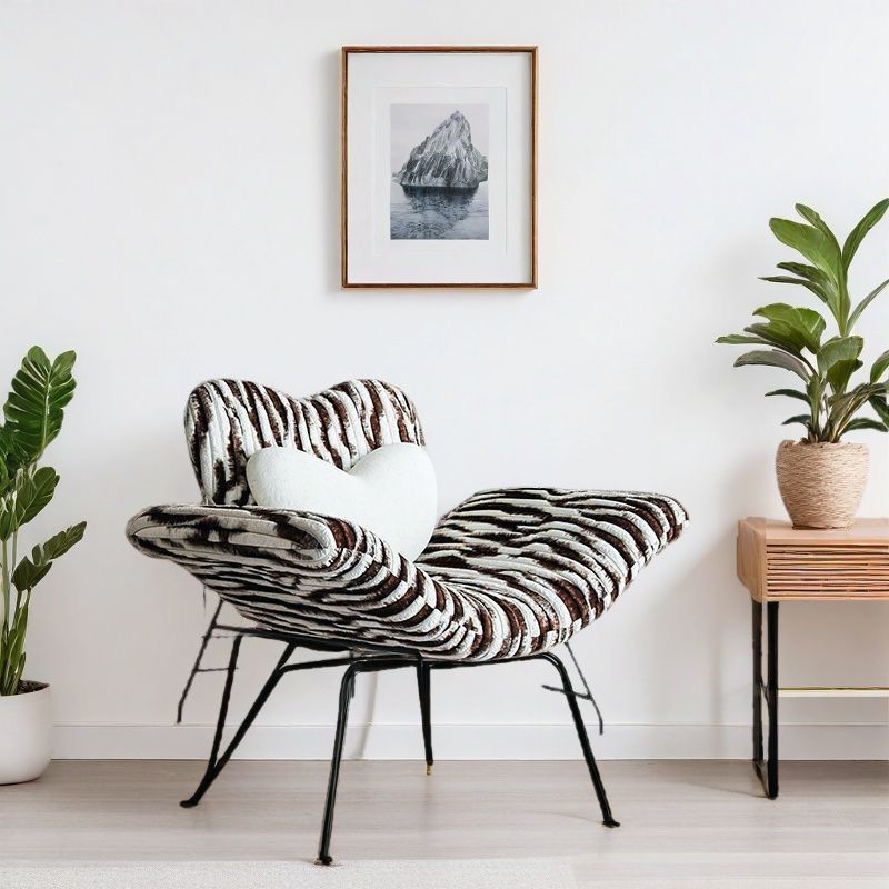 Indulge in cozy, modern comfort with this meticulously crafted lounge chair, the perfect minimalist addition to any living space. It combines a luxurious feel with lasting durability, featuring sumptuously soft rabbit fur upholstery and generous, plush sponge cushioning for an unparalleled seating experience. The chair is supported by a robust and sleek carbon-steel frame. Thoughtfully designed with a supportive backrest and integrated armrests, its arc-shaped silhouette and comfortable seat create a stylish yet functional accent piece for daily relaxation. Available in striking zebra print, classic black, and bold red, this chair is designed to effortlessly elevate your living room décor.