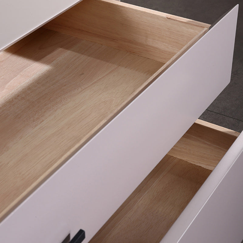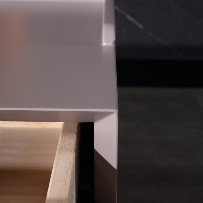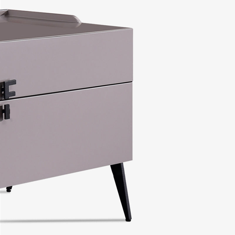 This modern minimalist bedside table features a sturdy E1 eco-friendly board frame, paired with solid wood drawers, carbon steel handles and a base frame, complemented by a smoothly baked paint cabinet. Two large-capacity drawers meet all storage needs. It serves as a sophisticated storage companion in the bedroom and a minimalist hallmark of the space, infusing homes with both texture and practical charm.