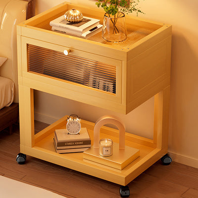 Traditional Vintage Square Glass Bamboo Movable Nightstand 1-Cabinet For Bedroom