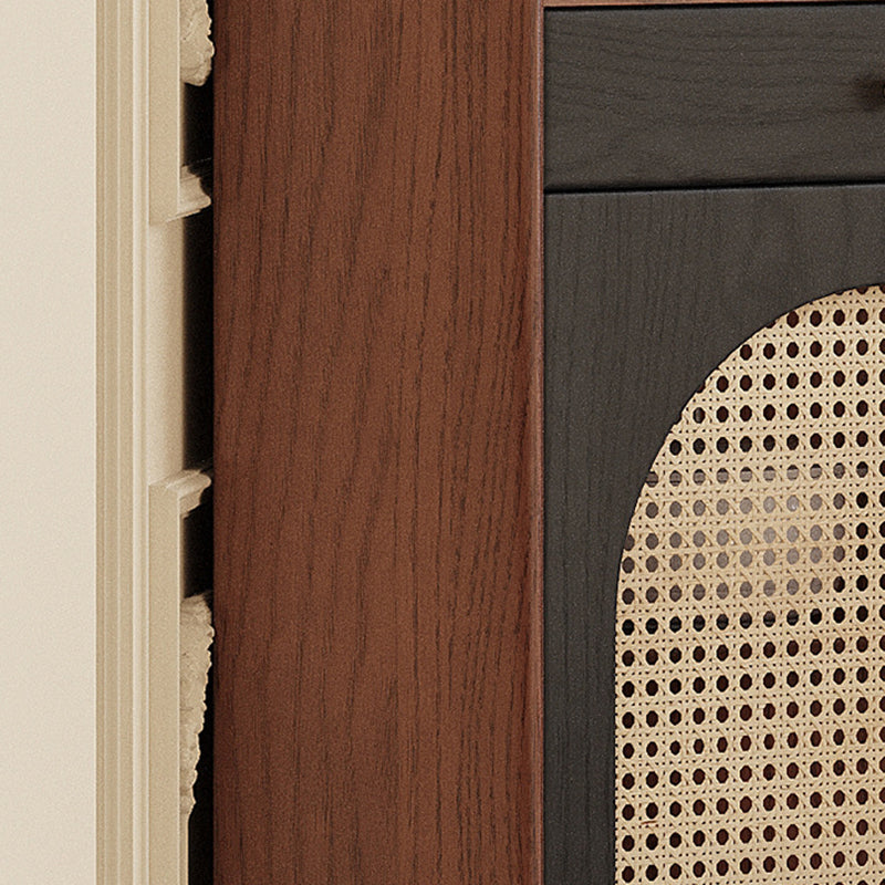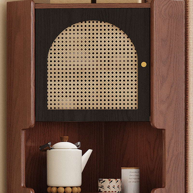 Elevate any corner with this traditional Japanese-style shelf, crafted from solid wood and natural rattan for an eco-friendly, durable design. Finished in rich walnut, this sturdy piece provides versatile organization with one drawer, two storage cabinets, and an open display shelf. Offering ample storage and display space, this unit is a stylish and practical addition to any living room corner.