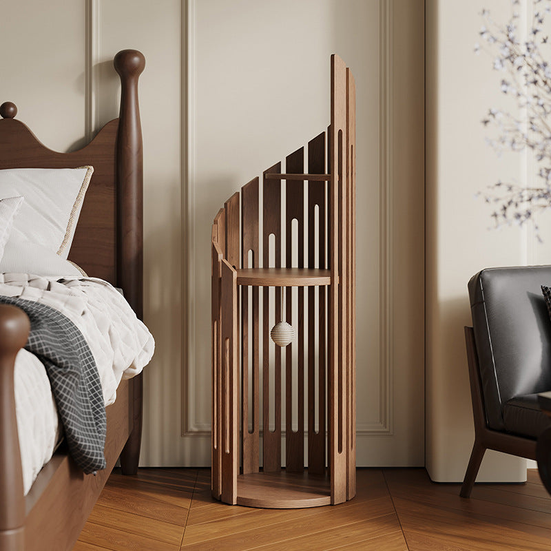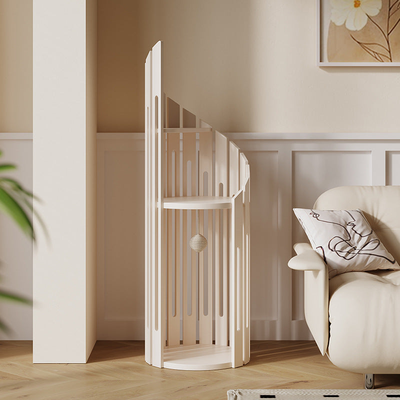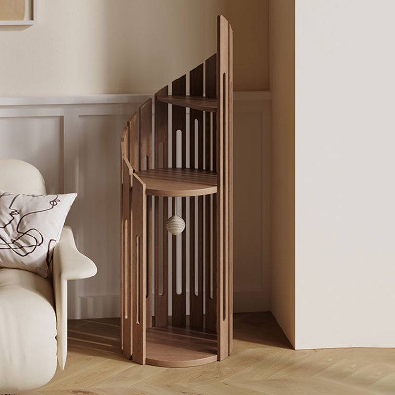 Introduce an architectural statement piece to your home with this striking modern Art Deco cat tree. Its design features a captivating, sculptural spiral silhouette, transforming traditional pet furniture into high-end home décor. The tower is crafted from durable solid rubberwood, ensuring exceptional stability, and finished in a sophisticated two-tone palette of rich walnut and crisp white.