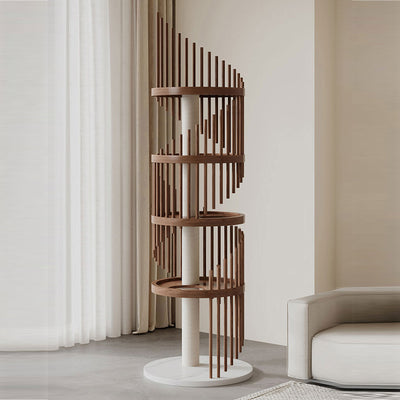 Modern Art Deco Round Rubberwood Pine Ash Stone Slab Spiral Cat Tree 3/4/5-Tier For Living Room