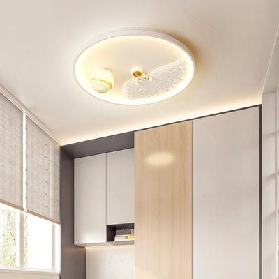 Modern Art Deco Silicone Aluminum Iron Creamy Globe LED Flush Mount Ceiling Light For Bedroom