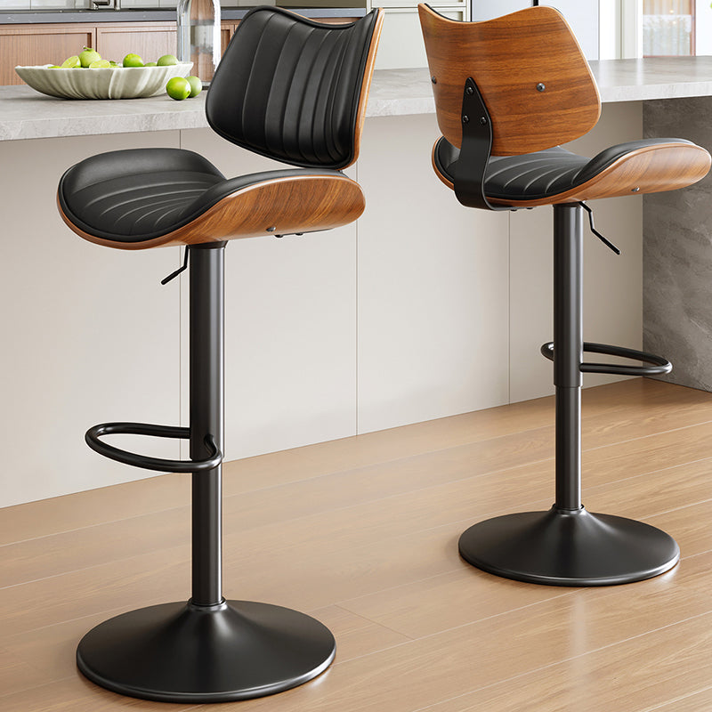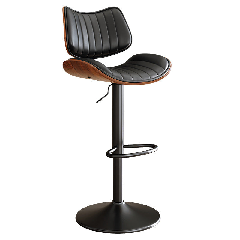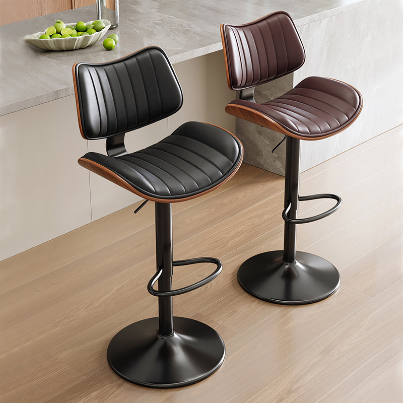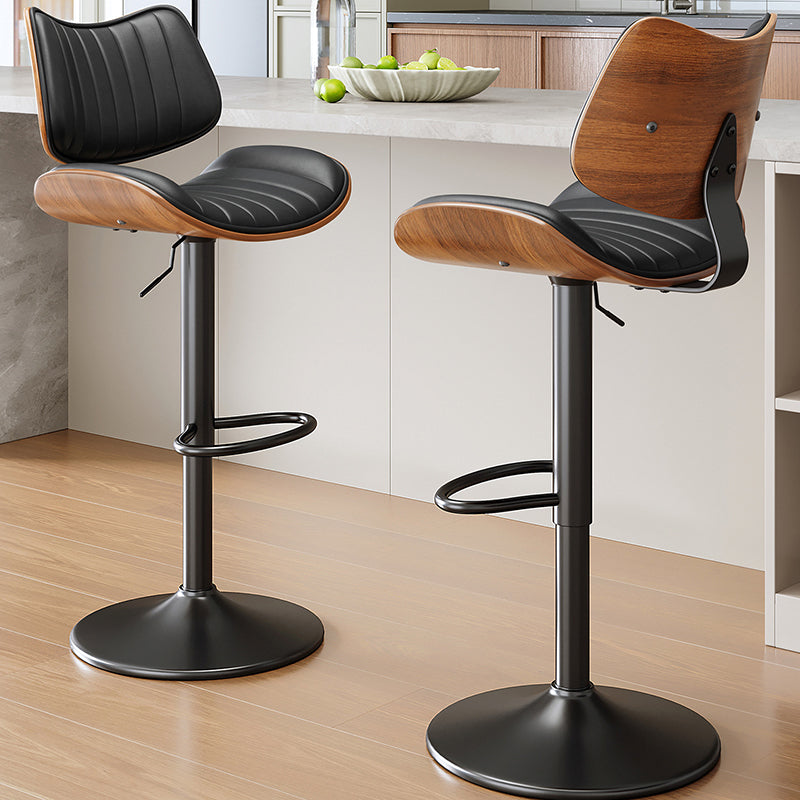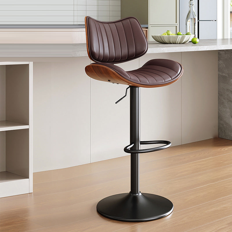 Contemporary Luxury Curved Rectangular Solid Wood PU Leather Iron Steel Swivel Height-Adjustable Bar Stool Backrest Armless For Dining Room & Kitchen