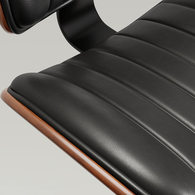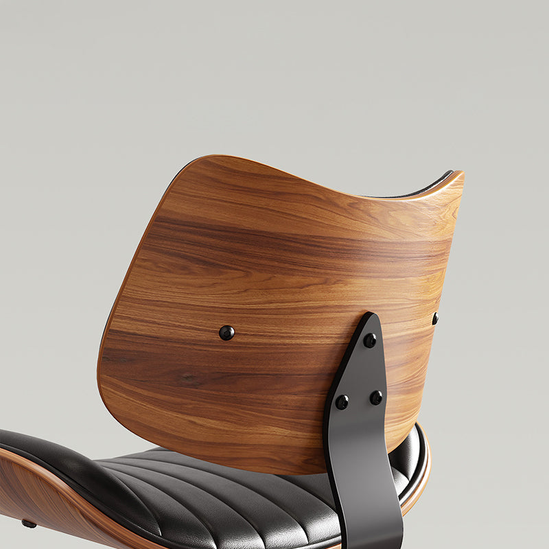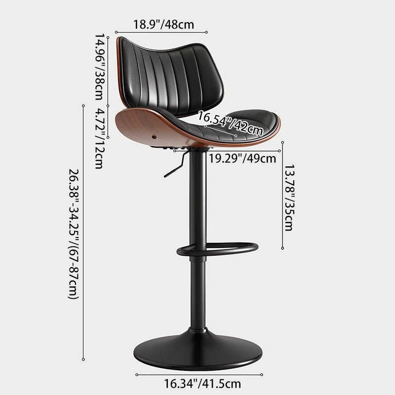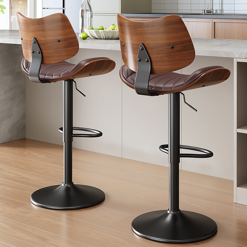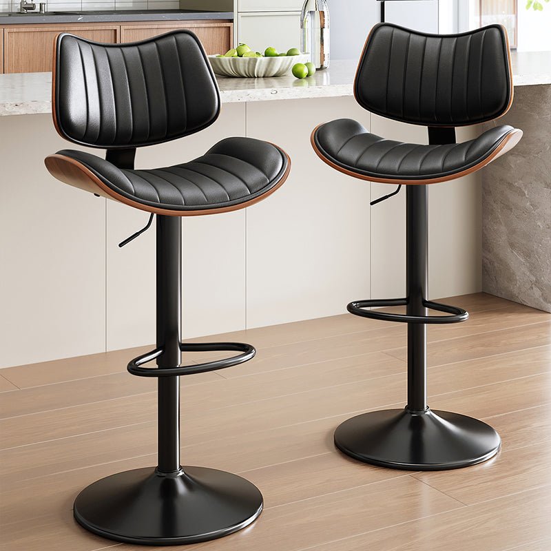 Contemporary Luxury Curved Rectangular Solid Wood PU Leather Iron Steel Swivel Height-Adjustable Bar Stool Backrest Armless For Dining Room & Kitchen