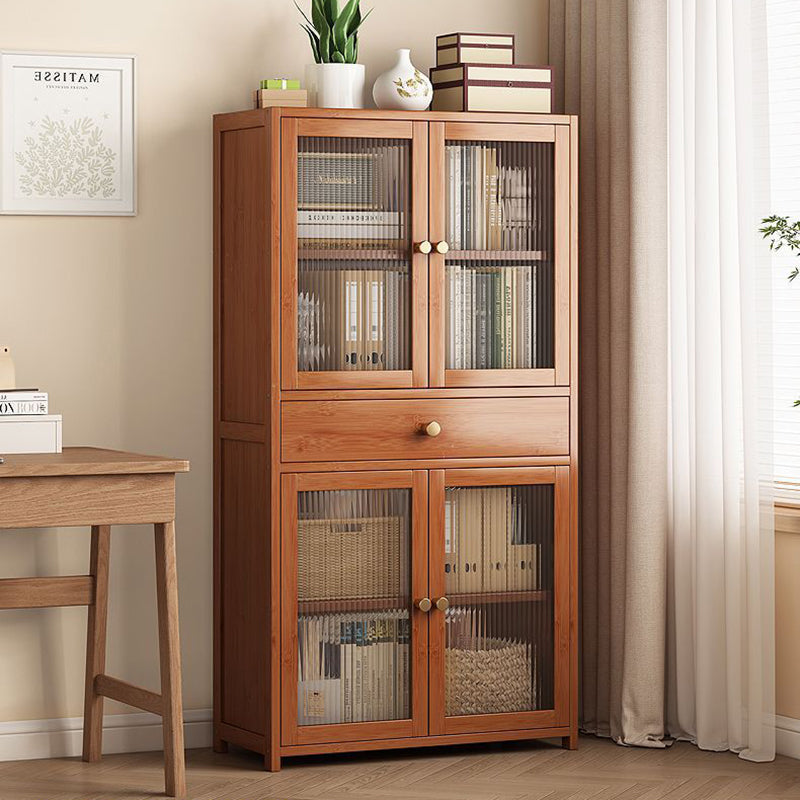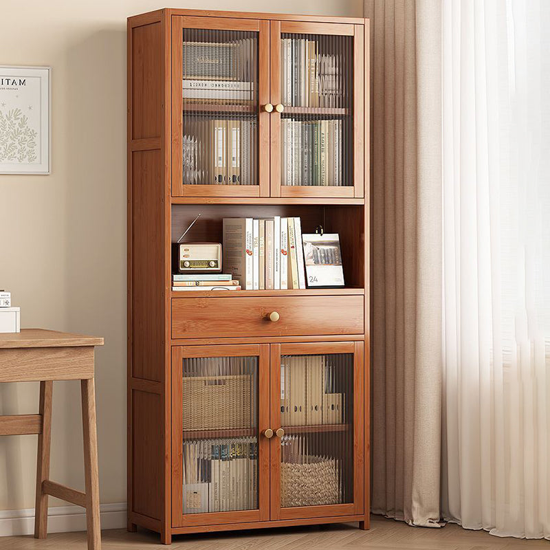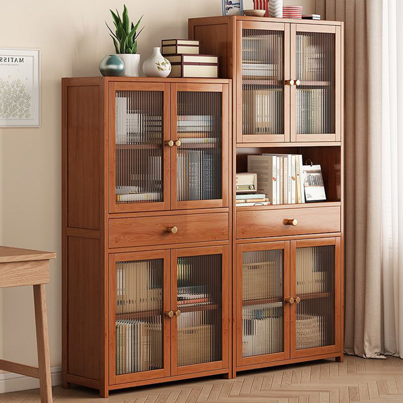 This modern minimalist bookshelf features a rectangular MDF frame with clear acrylic doors, offering 5 or 6 tiers of organized storage for books and home essentials. Finished in a walnut color, its multi-layer design helps keep items dust-free while providing easy, categorized storage for living rooms, bedrooms, or home offices.