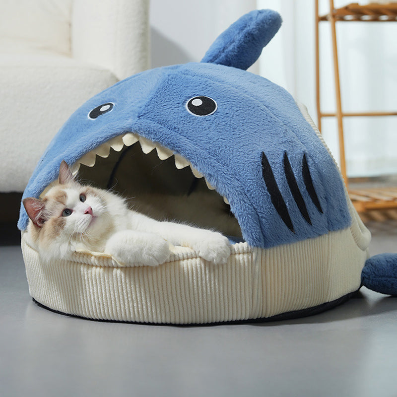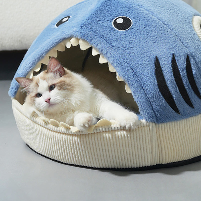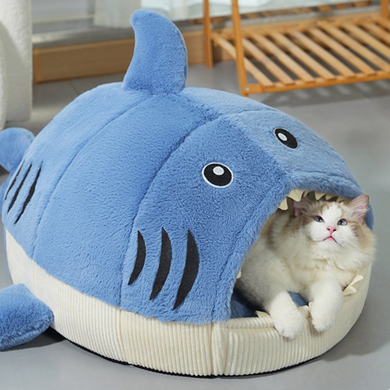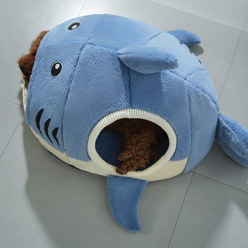 Treat your furry friend to the ultimate retreat with this contemporary creative pet bed, featuring an adorable shark-shaped design that adds a playful touch to any room. Crafted from ultra-soft rabbit fur fabric and plush PP cotton filling, it provides luxurious, year-round comfort. The thickened cushioned base and spacious interior create a secure haven, while the integrated structure ensures the bed maintains its shape even after long naps. Equipped with a non-slip bead bottom and easy-to-clean materials, it keeps pets warm and cozy in winter. Available in a charming blue, it is a stylish addition to bedrooms and pet-friendly homes.