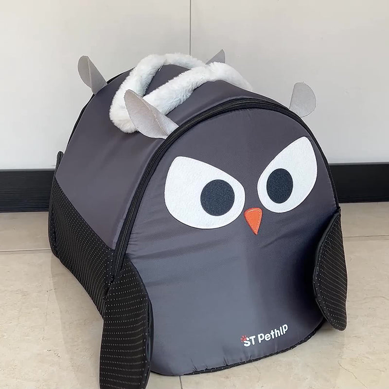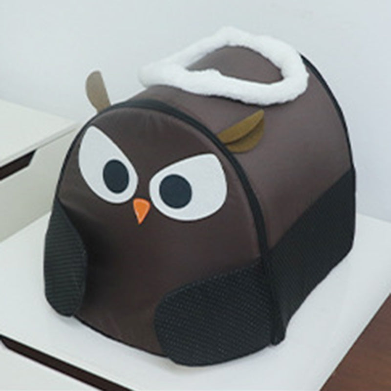 Create a serene retreat for your furry companion with this contemporary creative pet bed, featuring a charming owl-shaped design. Expertly crafted with a blend of durable Oxford fabric, soft rabbit fur, and plush velvet, it is filled with high-resilience foam to ensure year-round comfort. The semi-enclosed structure and thickened cushioned base provide a spacious interior where pets feel a deep sense of warmth and security. For added convenience, the bed includes removable and washable components and a non-slip beaded bottom, all while maintaining its shape over time. Available in brown and gray, it is ideal for bedrooms and cozy indoor spaces for cats and small pets.