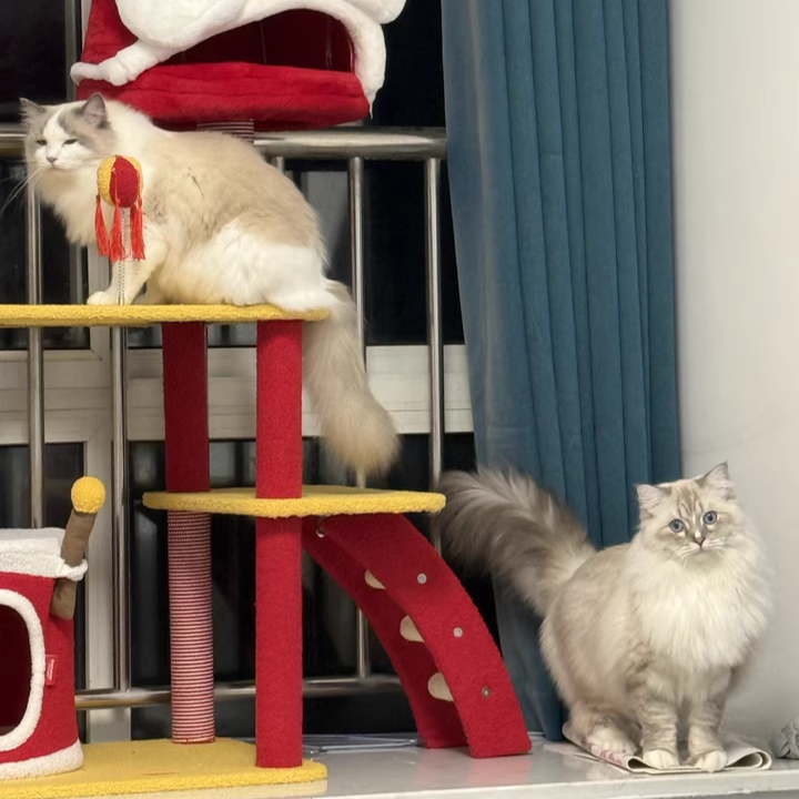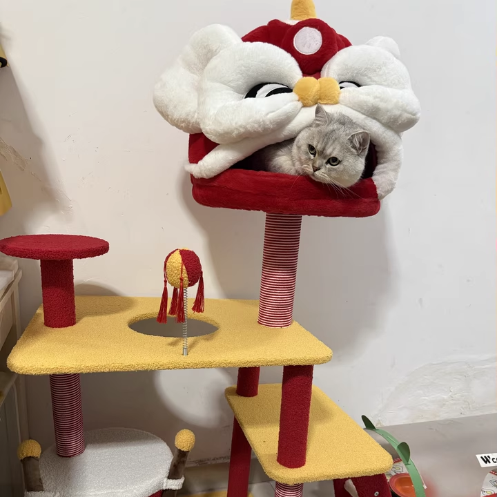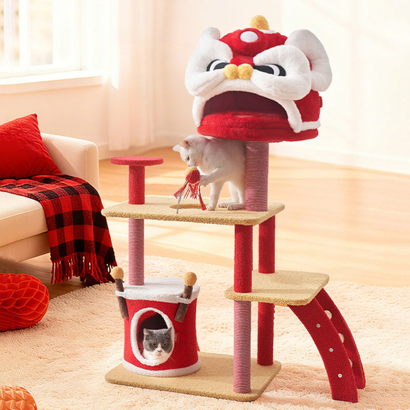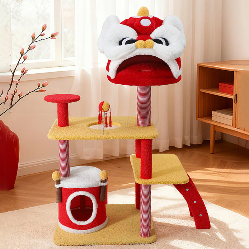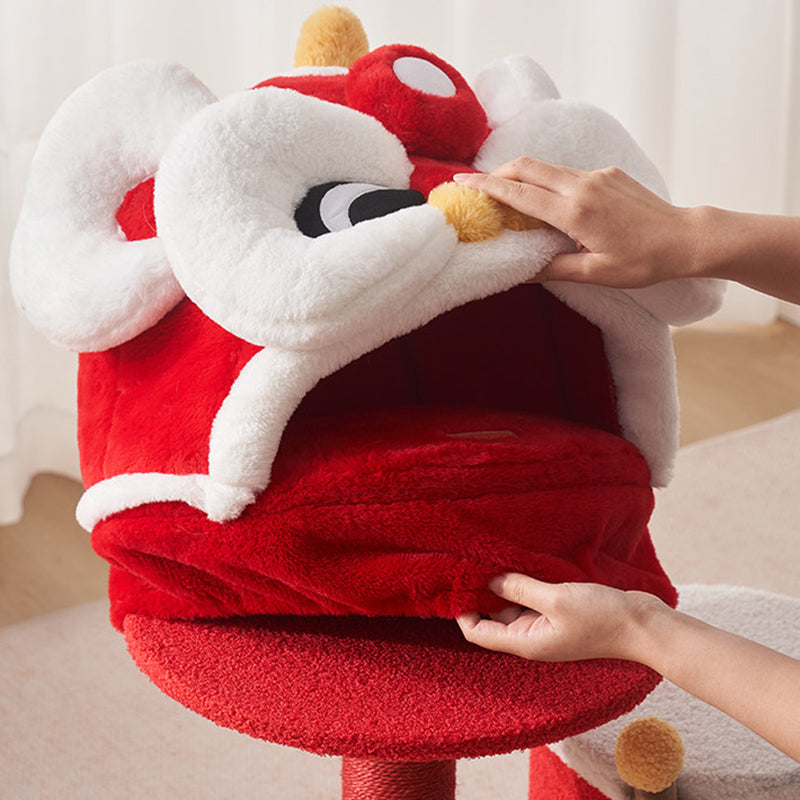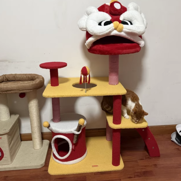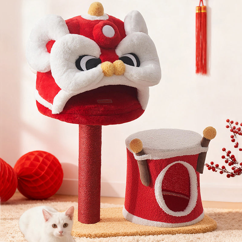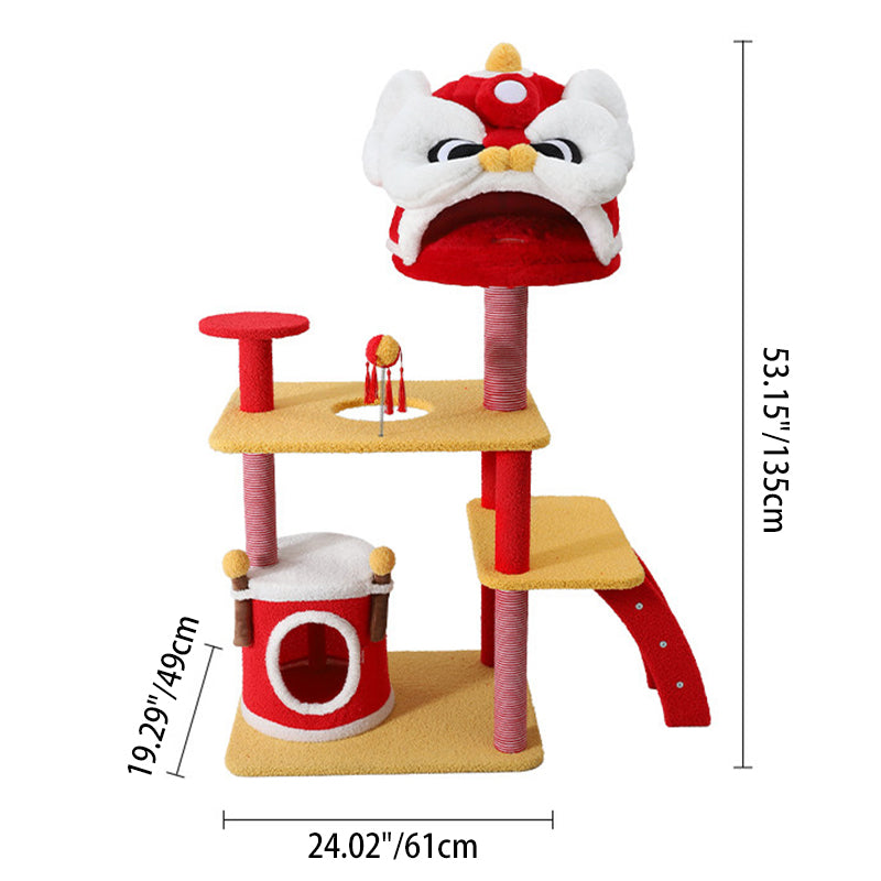 Infuse your home with luck, protection, and playful energy with our Chinese Lion-inspired cat tree. This isn't just a pet accessory; it’s a stunning "cultural accent" piece that celebrates the vibrant tradition of the Lion Dance through a bold Imperial Red and Gold aesthetic. Masterfully crafted from Eco-friendly E1-grade particle board and swathed in ultra-soft Teddy Plush, this tower offers a multi-sensory experience for your cat. The 2-tier vertical architecture provides a dynamic landscape for climbing, high-altitude lounging, and secluded napping, making it a perfect functional centerpiece for living rooms or bedrooms that crave a "boho-eclectic" or "global-modern" touch.