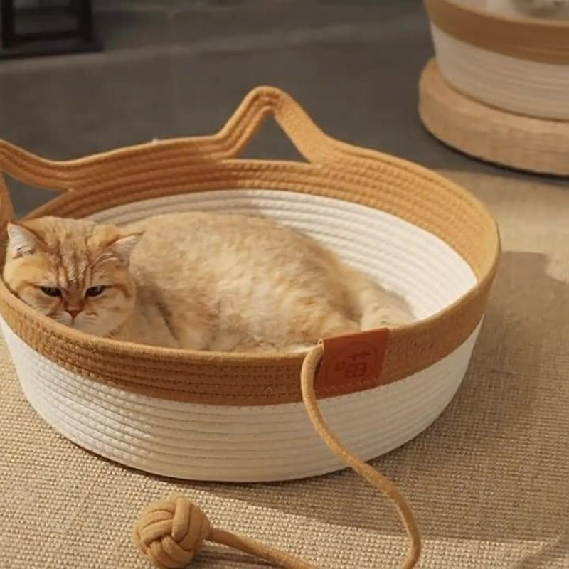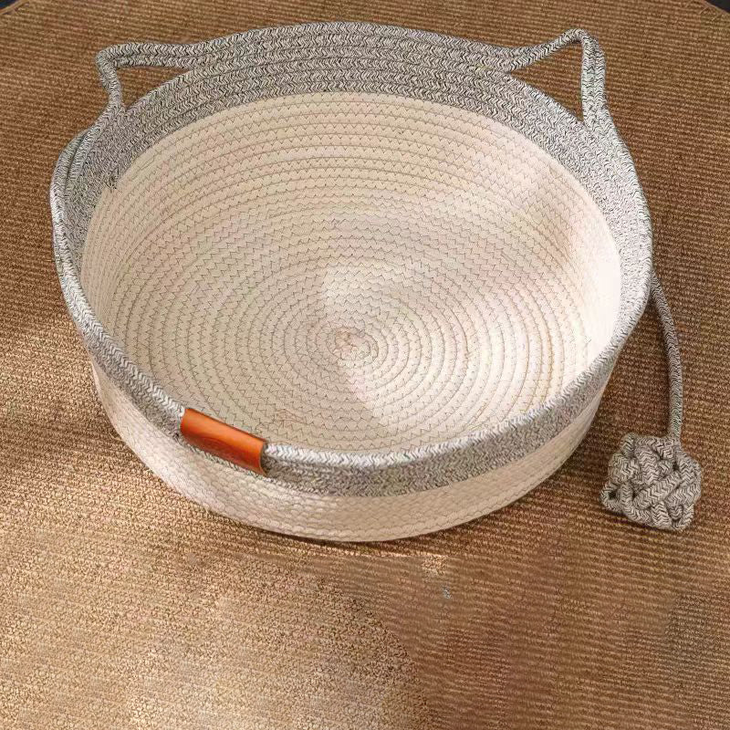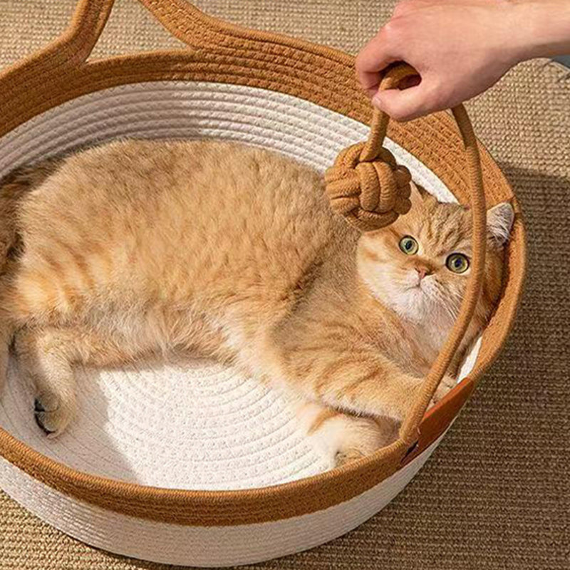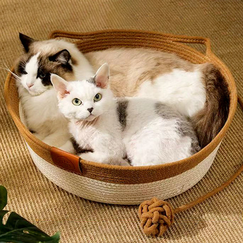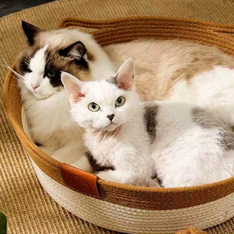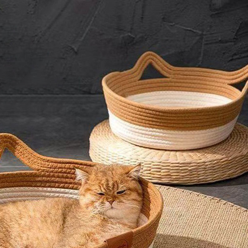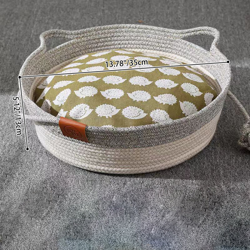 Blending natural aesthetics with functional design, this contemporary cat bed features a spacious round silhouette crafted from durable coarse rattan. The high-quality weave ensures breathable comfort and structural integrity, maintaining its shape even after extended use. Perfectly sized for cats and small pets, this versatile piece doubles as a stylish accent in any living room or bedroom. Available in gray, brown, and green, it offers a calming, organic look that complements the modern home.