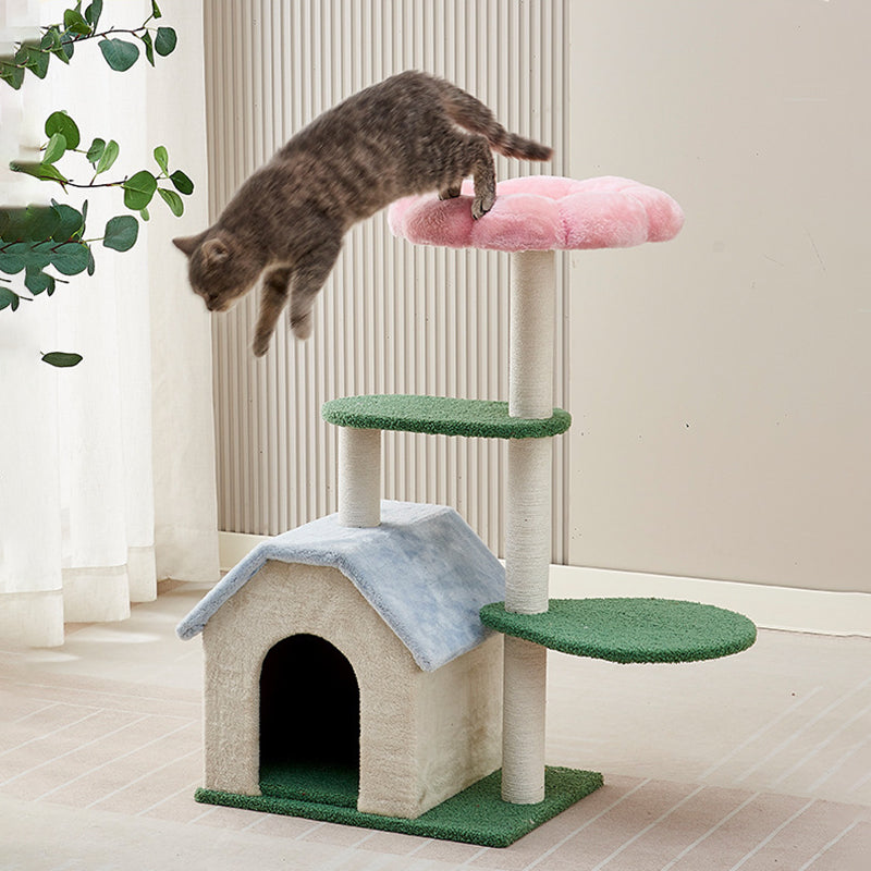 Designed for the high-energy needs of indoor cats, this all-in-one activity center is anchored by heavy-duty natural sisal scratching posts that provide a satisfyingly rugged texture for daily claw maintenance. Whether your cat is looking to survey their kingdom from the elevated observation perch or retreat to the mid-level lounge, this tree offers a safe and dedicated "pet zone" that helps protect your expensive furniture from scratching damage. Its compact, round footprint is specifically optimized for apartment living, offering maximum enrichment without crowding your space. This is the ideal choice for shoppers seeking colorful modern cat trees, small-space cat towers, sisal-wrapped scratching posts, and aesthetic multi-level pet furniture.