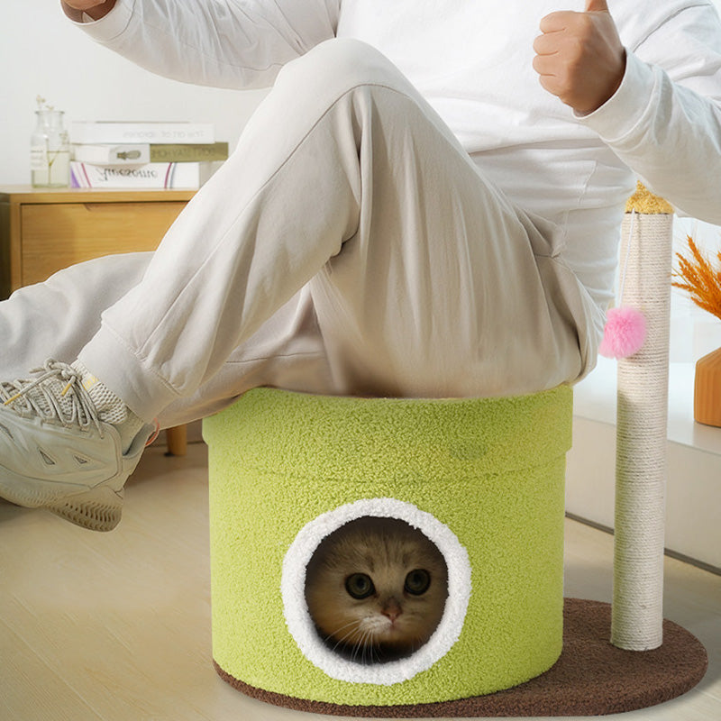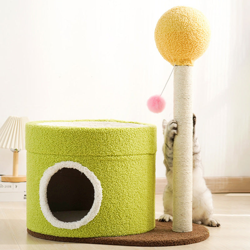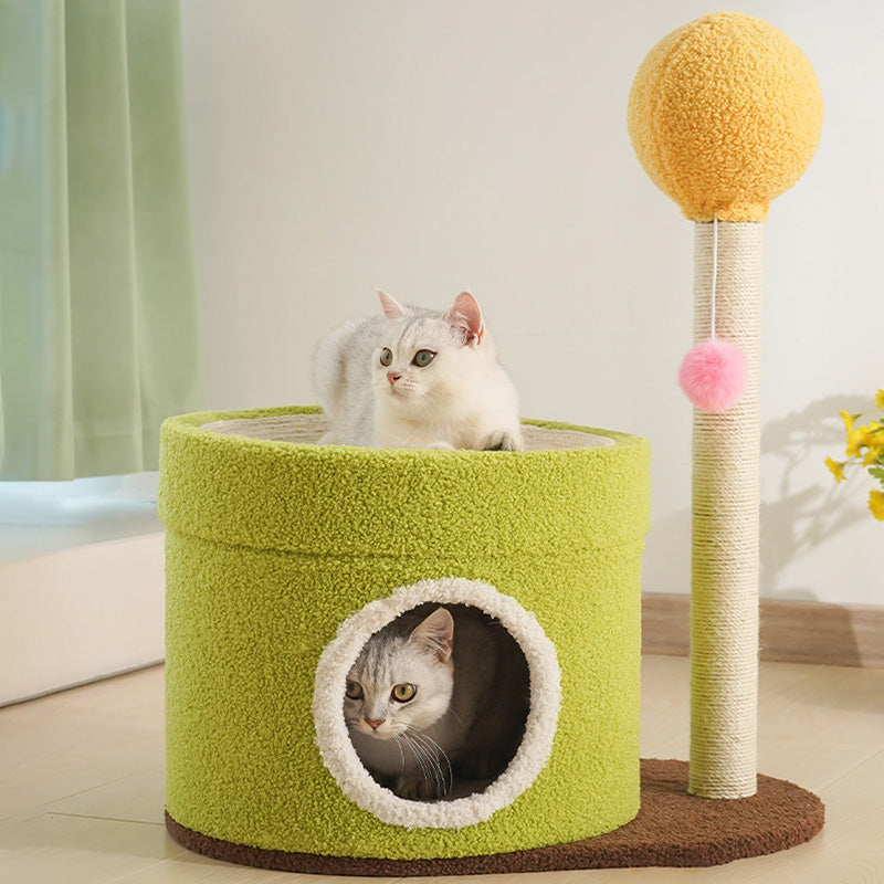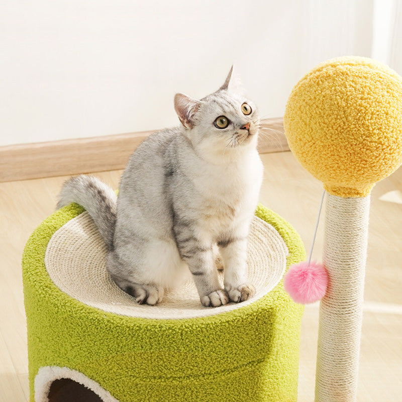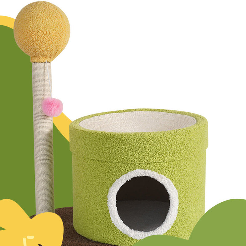 Engineered for high-performance durability, the Citrus Sprout is built to withstand the most enthusiastic "Zoomies." The structural core is outfitted with industrial-grade natural sisal scratching surfaces, providing a rugged, long-lasting texture that satisfies primal grooming instincts while safeguarding your designer furniture from claws. Built on a reinforced, wobble-free foundation, this tree offers "Rock-Solid" stability for year-round play and relaxation. Whether your cat is looking for a secluded den-like retreat or a vertical climbing challenge, this is the premier choice for shoppers seeking modern round cat trees, space-saving colorful cat condos, scratch-resistant pet furniture, and aesthetic small-breed scratching posts.
