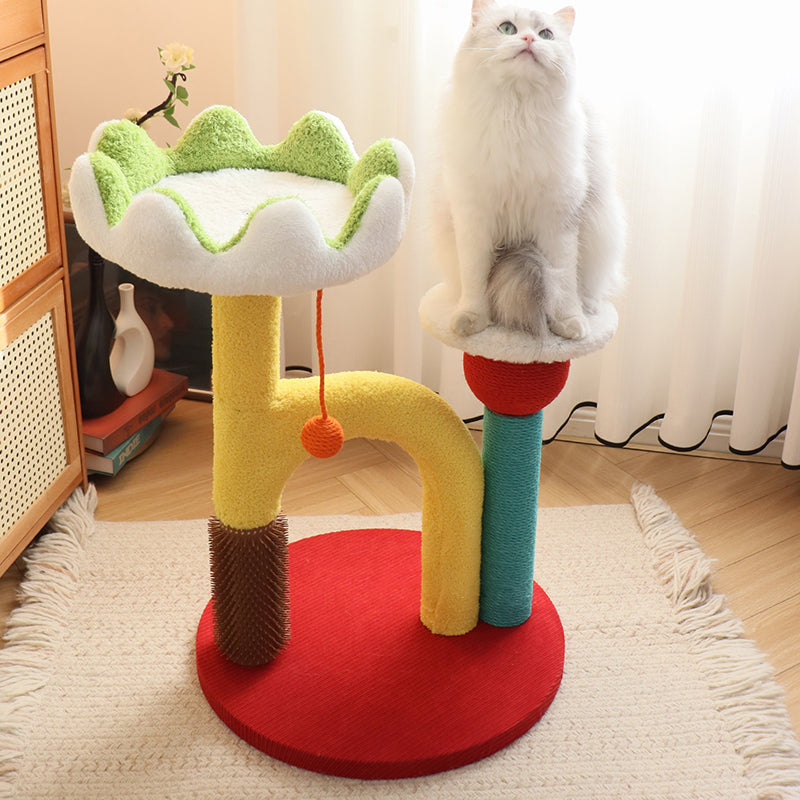 Engineered for the modern urban dweller, this space-saving pet riser is built on a high-stability MDF foundation and wrapped in "cloud-touch" plush fabric for ultimate softness. To satisfy natural instincts, the structural pillars are reinforced with heavy-duty natural sisal, providing a rugged, long-lasting surface that diverts claws away from your furniture. We offer tailored size options to suit your feline family: a Standard size for kittens and small cats (up to 4kg/9lbs) and a Large version for medium breeds (up to 8kg/18lbs). This is the premier choice for shoppers searching for flower-shaped cat trees, aesthetic small cat towers, lotus pet furniture, and modern colorful scratching posts.