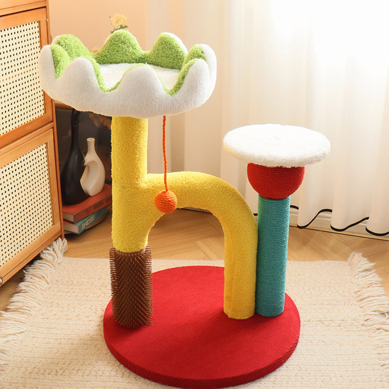 Infuse your home with tranquility and whimsical charm with our Lotus-inspired round cat tree. This "Art-Deco" pet sanctuary breaks away from the industrial look of traditional towers, featuring a sculptural design that mimics a blooming water lily. Designed as a compact 2-tier activity center, it offers a ground-level scratching foundation and an elevated, petal-rimmed lounge that cradles your cat in comfort. Available in vibrant Imperial Red, Pristine White, and Sunny Yellow, this boutique cat tree functions as a bold "pop of color" and a conversation piece, fitting seamlessly into contemporary North American living rooms or cozy bedroom nooks.