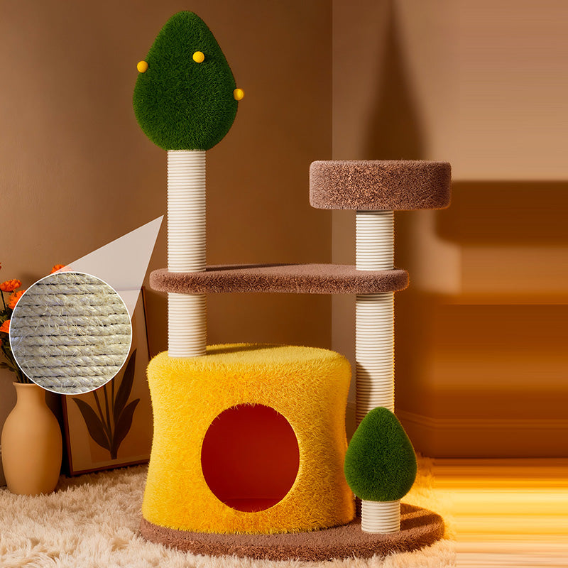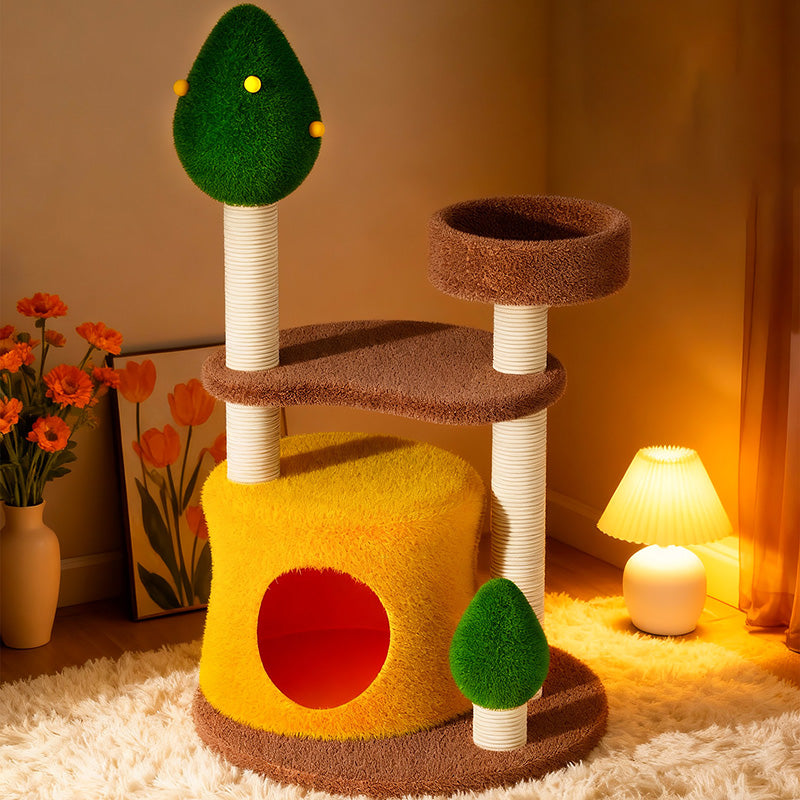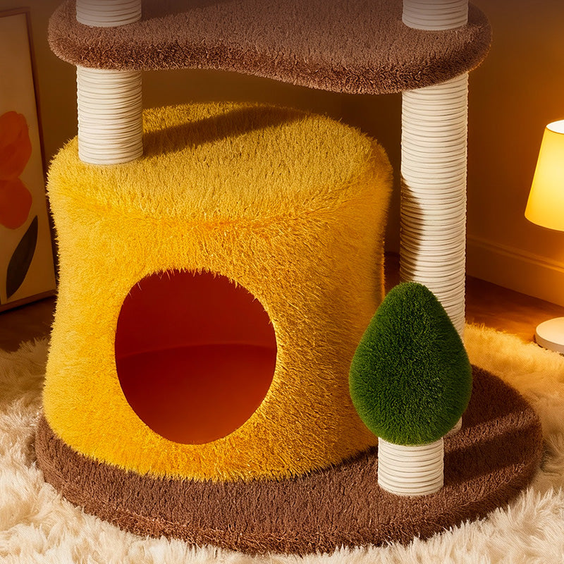Bring the refreshing energy of the outdoors into your home with the Meadow Peak, a boutique 3-tier activity center designed for the modern "Biophilic" home. Dressed in a sophisticated palette of Deep Forest Green, Earthy Brown, and Zesty Yellow, this vertical playground serves as a vibrant, nature-inspired accent that elevates your living room or bedroom decor. The space-saving 3-level architecture is masterfully engineered to encourage healthy climbing and vertical exploration, providing your cat with a dedicated "Territorial Lookout" without occupying excessive floor space. It is the perfect solution for pet parents seeking a blend of "Cottagecore" charm and high-functioning pet utility.