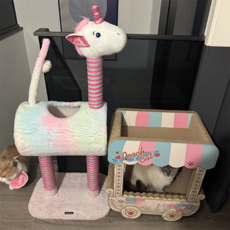 Whisk your feline friend away to a world of wonder with the Enchanted Menagerie, a creative 2-level cat tree condo that blends storybook charm with modern pet ergonomics. Available in two adorable personas—a Pastel Pink Unicorn and a Earth-Toned Giraffe—this round structure is designed to be more than just a pet accessory; it’s a "Dopamine Decor" statement for your home. Crafted with a premium MDF wood foundation and upholstered in "Marshmallow-Soft" plush fabric, this condo offers a private, cozy hideaway for deep-sleep lounging and an elevated perch for curious observers. It is the perfect whimsical addition for North American nurseries, bedrooms, or playful living rooms seeking a touch of "Animal-Chic" flair.