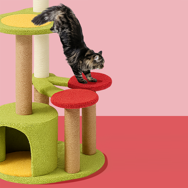 Engineered for the high-energy demands of the "modern mouser," this heavy-duty cat tower is built on a reinforced MDF foundation, offering superior durability and a wobble-free experience that outlasts cheaper cardboard alternatives. The structural pillars are fully wrapped in industrial-grade natural sisal, providing a rugged, scratch-resistant surface that diverts claws away from your designer upholstery. With a robust build that comfortably supports 1-2 cats up to 10kg (22 lbs), this tree offers plenty of vertical territory for climbing and stretching. It is the premier choice for shoppers seeking aesthetic fruit-shaped cat trees, modern multi-level cat condos, stable sisal scratching towers, and unique red and green pet furniture.