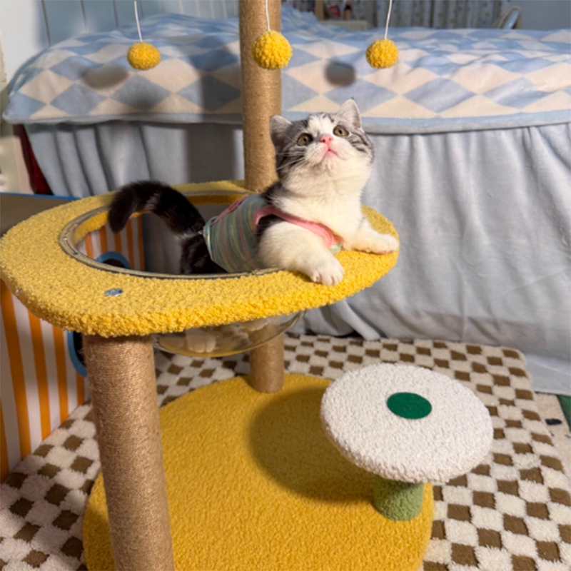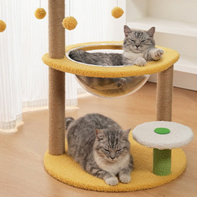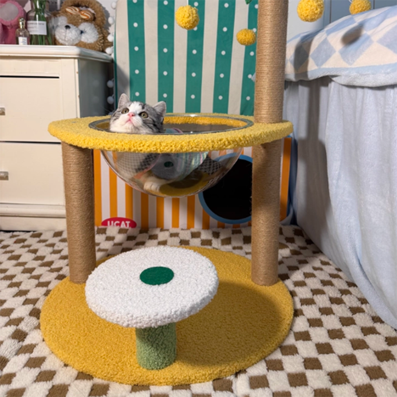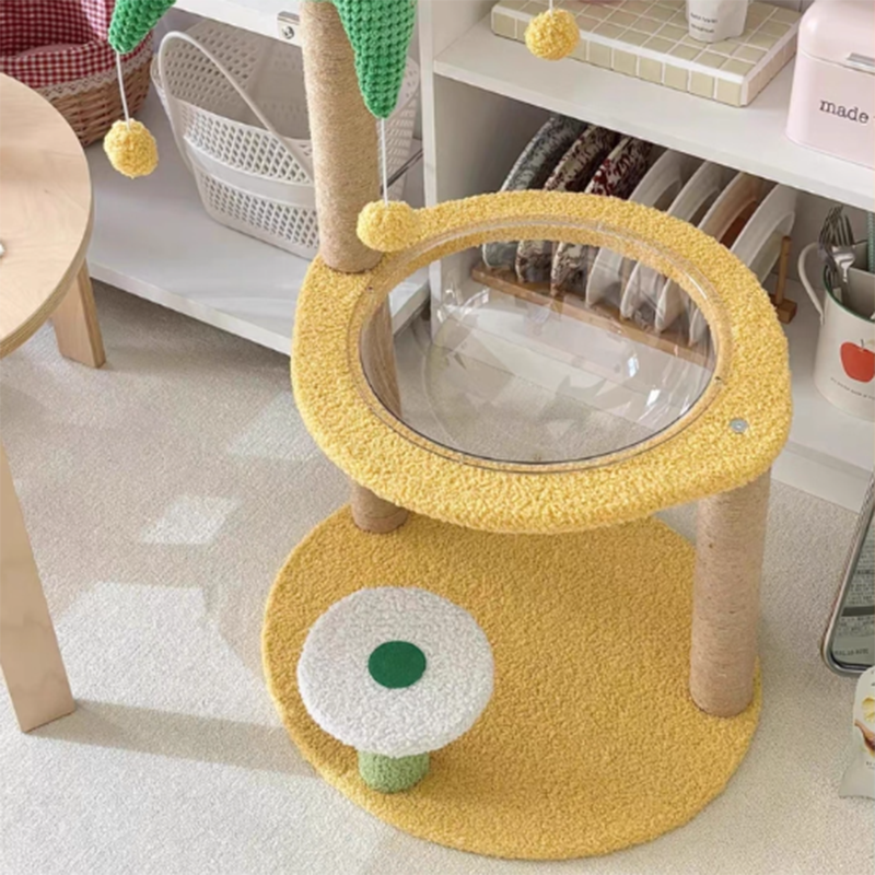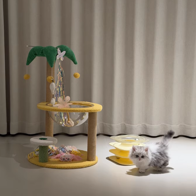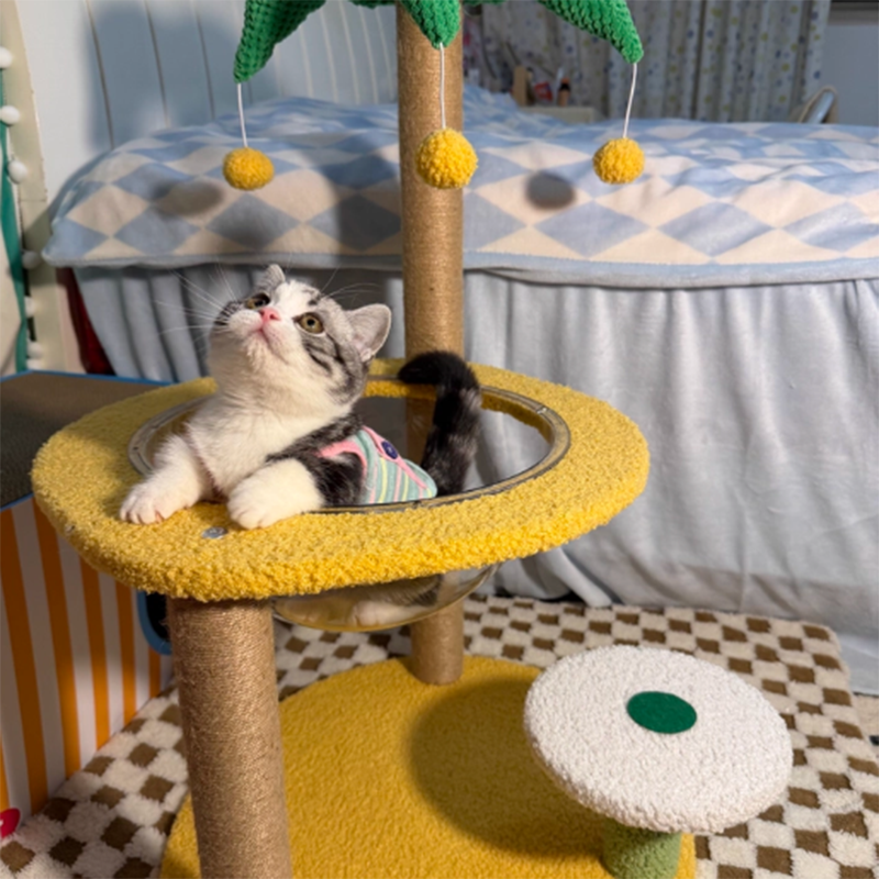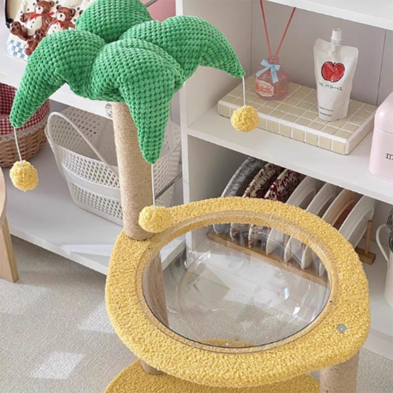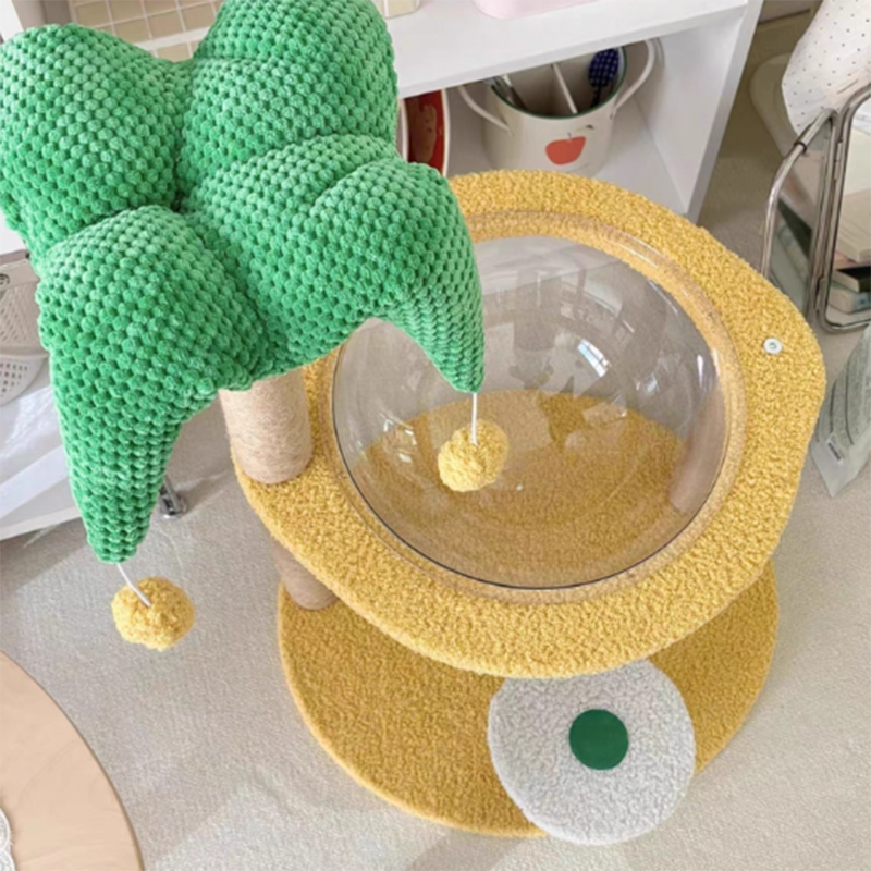 Transform your home into a sun-soaked paradise with The Oasis Peak, a whimsical palm tree-inspired cat tower designed for the modern "Dopamine Decor" enthusiast. This creative 2-tier sanctuary captures the vibrant energy of the tropics with a bold palette of Electric Yellow, Jungle Green, and Sunset Orange. Engineered with a compact round silhouette, it is the ultimate "Small-Space Hero" for North American apartments and urban bedrooms. Whether your cat is looking to survey their kingdom from the leafy upper perch or settle in for a "Vacation Nap" on the plush base, this tree serves as a high-energy focal point that brings a playful, organic vibe to any interior.