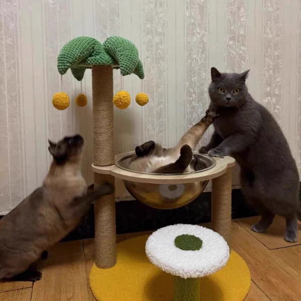 Contemporary Creative Round Medium-Density Fiberboard Velvet Fabric Sisal Coconut Tree Cat Tree For Living Room