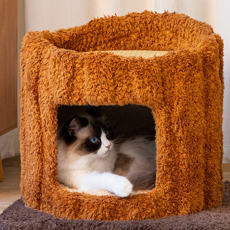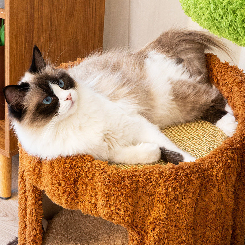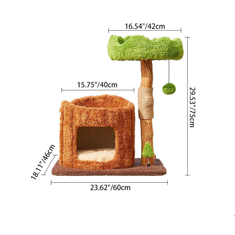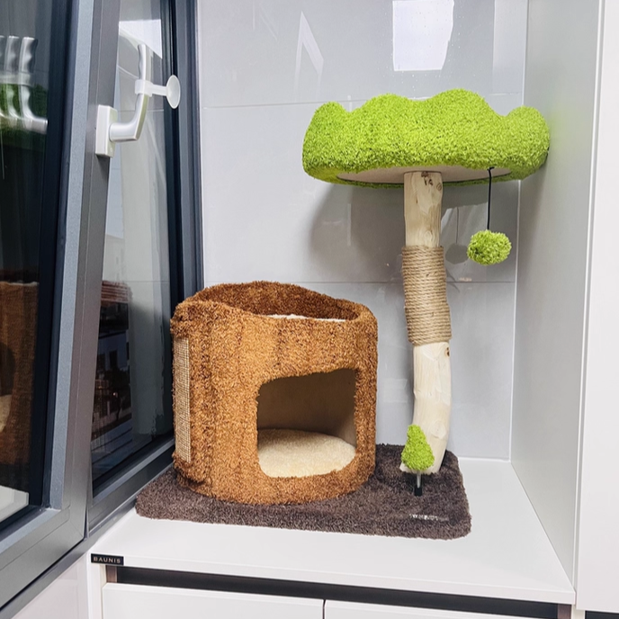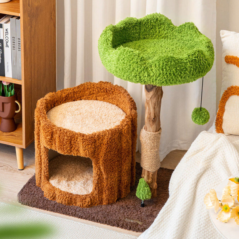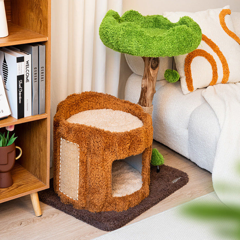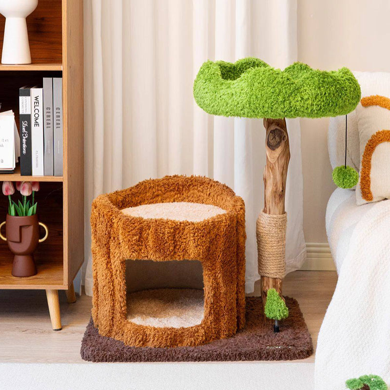 Engineered for the discerning North American homeowner, the Elderwood Stump is as "Rock-Solid" as the timber it’s made from. The solid fruitwood trunk provides superior structural integrity and a low center of gravity, safely supporting cats up to 8 kg (18 lbs) without the wobbling common in lightweight alternatives. The exterior is strategically accented with industrial-strength natural sisal scratching zones, satisfying your cat's primal urge to shred while safeguarding your designer upholstery. Upholstered in "Forest-Floor" ultra-soft plush, this compact unit is the premier choice for shoppers seeking luxury solid wood cat trees, natural branch cat towers, sturdy tree-stump pet condos, and aesthetic organic pet furniture for small spaces.