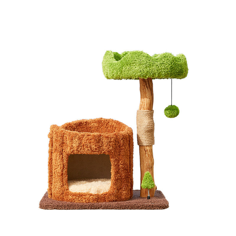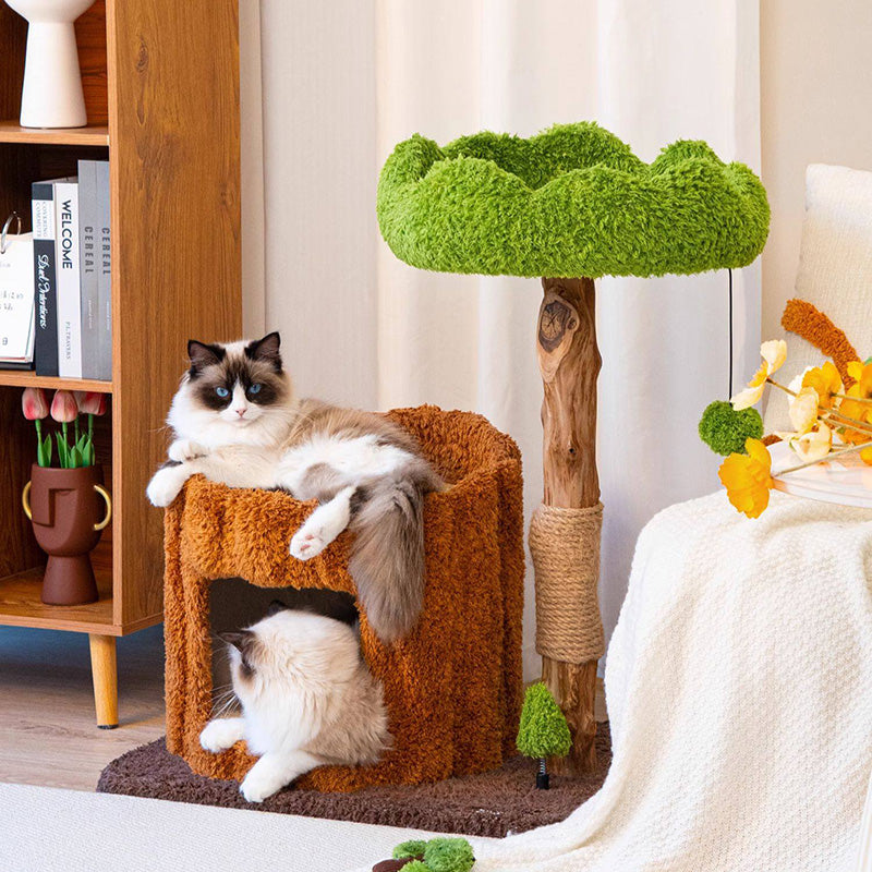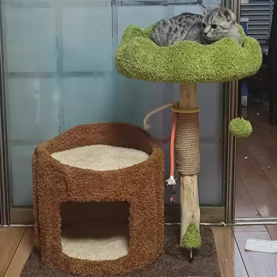 Invite the magic of the forest into your home with the Elderwood Stump, a masterpiece of "Biophilic" pet furniture that blurs the line between nature and design. This 3-tier solid wood cat tree features a breathtaking, authentic tree-stump silhouette, meticulously handcrafted from genuine natural fruitwood. Unlike mass-produced plastic towers, each piece boasts unique organic textures, finished in a forest-inspired palette of Moss Green and Earthy Brown. The ground-level features a secluded, "hollow-log" enclosed bed, providing a high-security sanctuary for deep-sleep recovery, while the upper tiers offer "Canopy-Level" perches for the ultimate observation post.