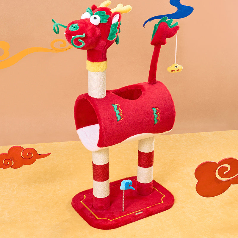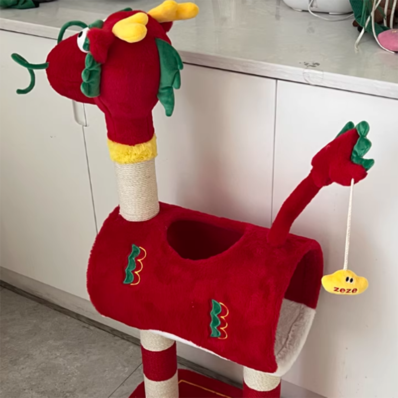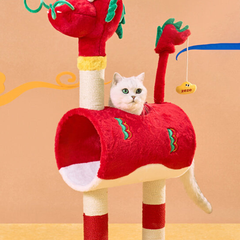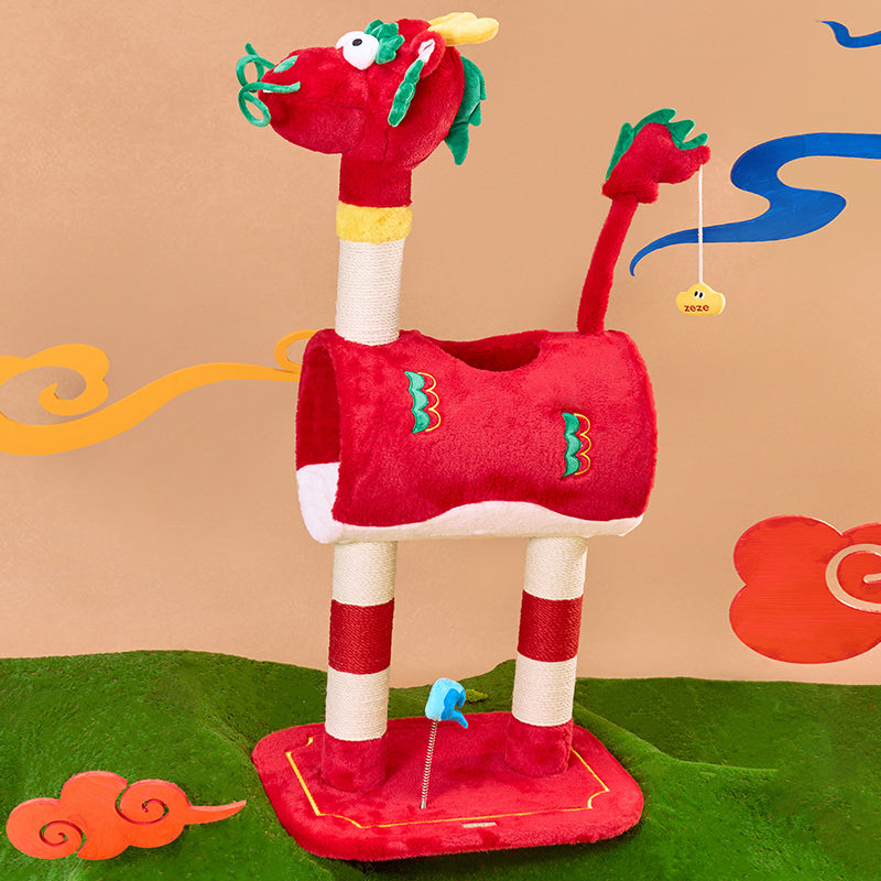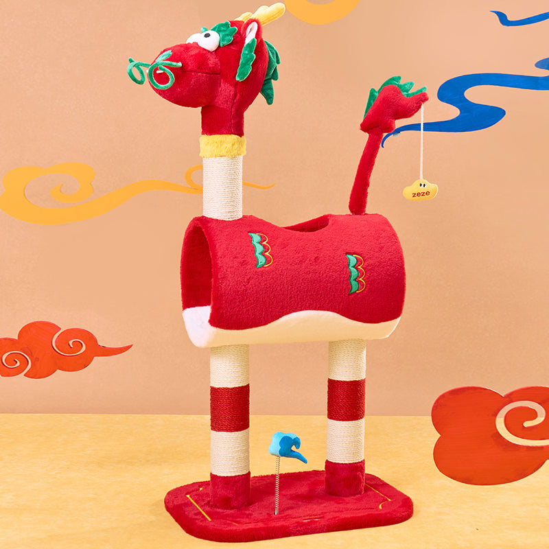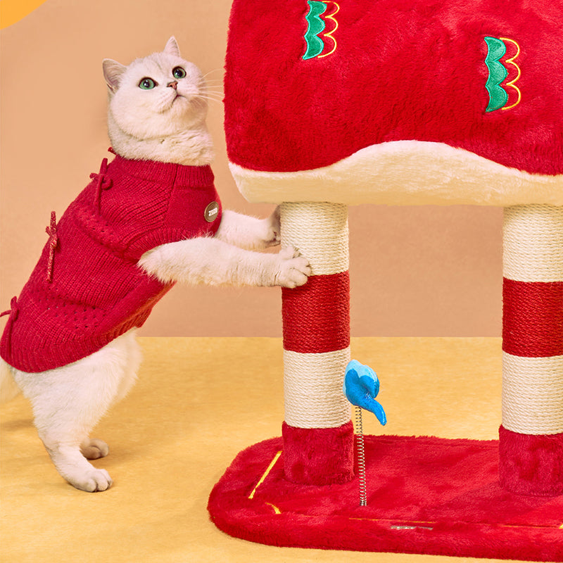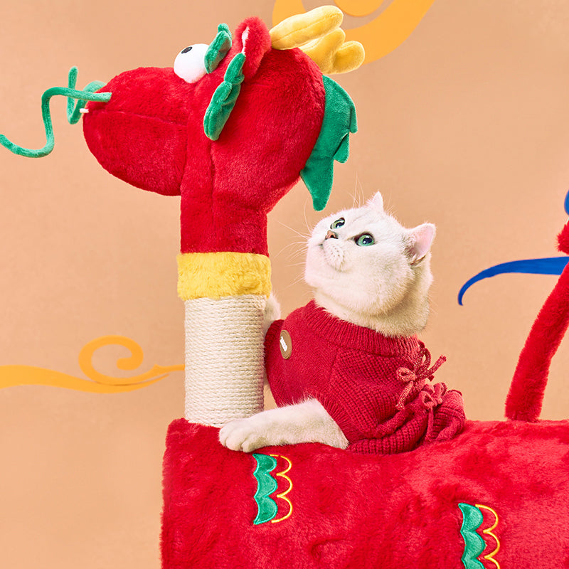 Embrace the energy of "Success and Vitality" with the Dragon-Horse Spirit Cat Tree, a creative masterpiece that blends ancient mythic inspiration with modern pet utility. This contemporary 2-tier round silhouette is finished in a vibrant, festive Lucky Red, designed to bring a bold "Dopamine" pop to your North American living room or bedroom. Inspired by the legendary "Longma" (Dragon-Horse), this tree serves as a symbolic centerpiece, offering a multi-functional sanctuary where your feline can climb, scratch, and rest. Its compact, space-saving footprint makes it an ideal choice for urban apartments and "Zen-Modern" interiors, proving that even a small footprint can provide a world of adventure.