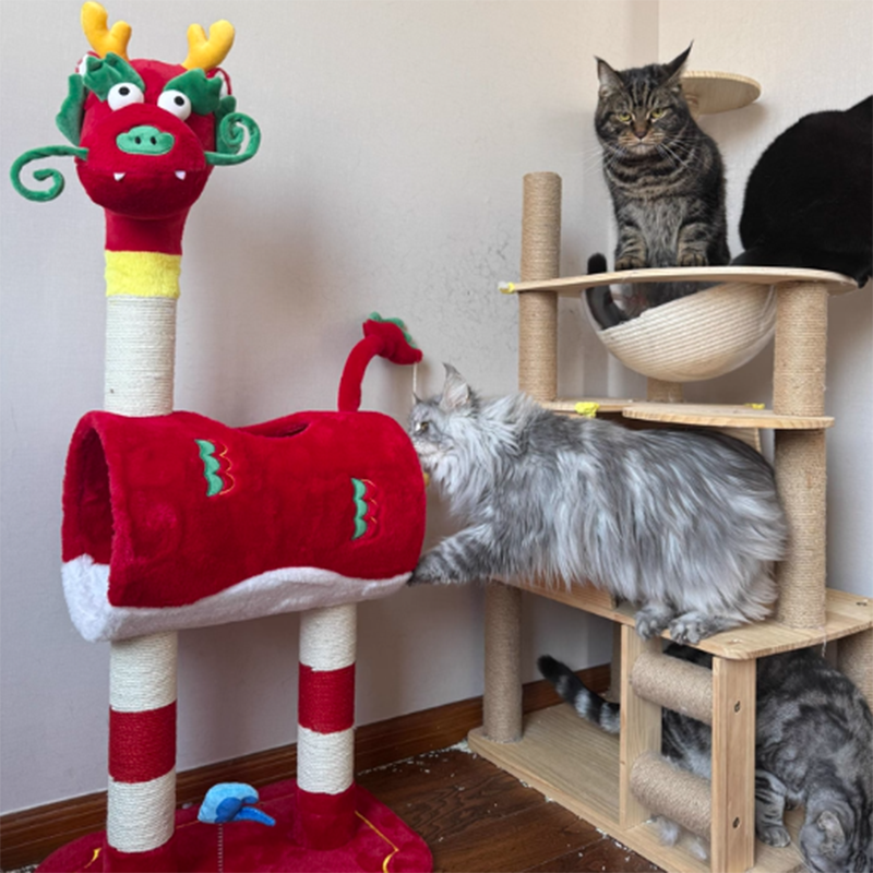 Engineered for the discerning pet parent, the Dragon-Horse Spirit is built with ultra-durable, wear-resistant materials that stand up to the most aggressive play. Unlike traditional plush trees, this model features low-shedding architectural fabrics, ensuring your home stays pristine while providing a rugged texture that cats love. Optimized for cats under 10 kg (22 lbs), the reinforced internal structure provides a "Rock-Solid" foundation for high-energy pouncing and deep-sleep lounging. This is the premier choice for shoppers seeking creative animal-themed cat furniture, modern red cat scratching posts, durable low-shedding cat trees, and compact cultural-inspired pet accents for small spaces.
