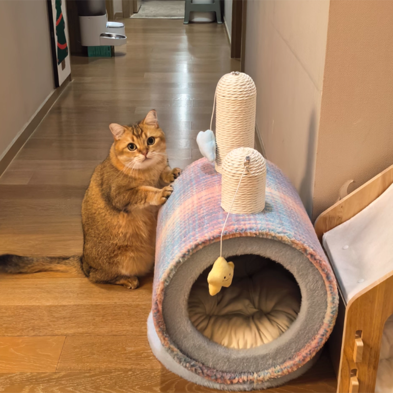 Designed for the multi-functional home, this heavy-duty pet bed transitions effortlessly from a warming sleeping pod to a scratch-friendly hideaway, featuring a durable exterior that stands up to playful paws and daily kneading. With a generous interior capacity that comfortably supports cats and small dogs up to 10kg (22 lbs), it offers ample room for larger breeds to curl, stretch, and burrow. The "marshmallow" soft cushioning is filled with premium, non-clumping fibers that maintain their loft and support over time, ensuring a cloud-like experience year-round. This is the premier choice for pet owners searching for calming hooded cat beds, winter warming pet nests, aesthetic small dog hideaways, and washable plush animal furniture.