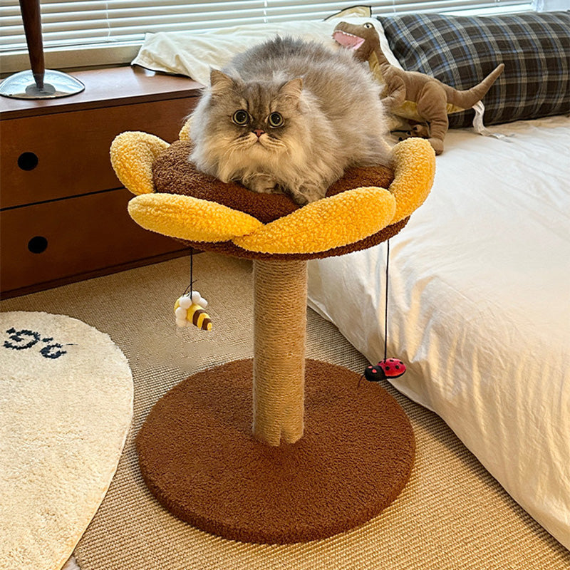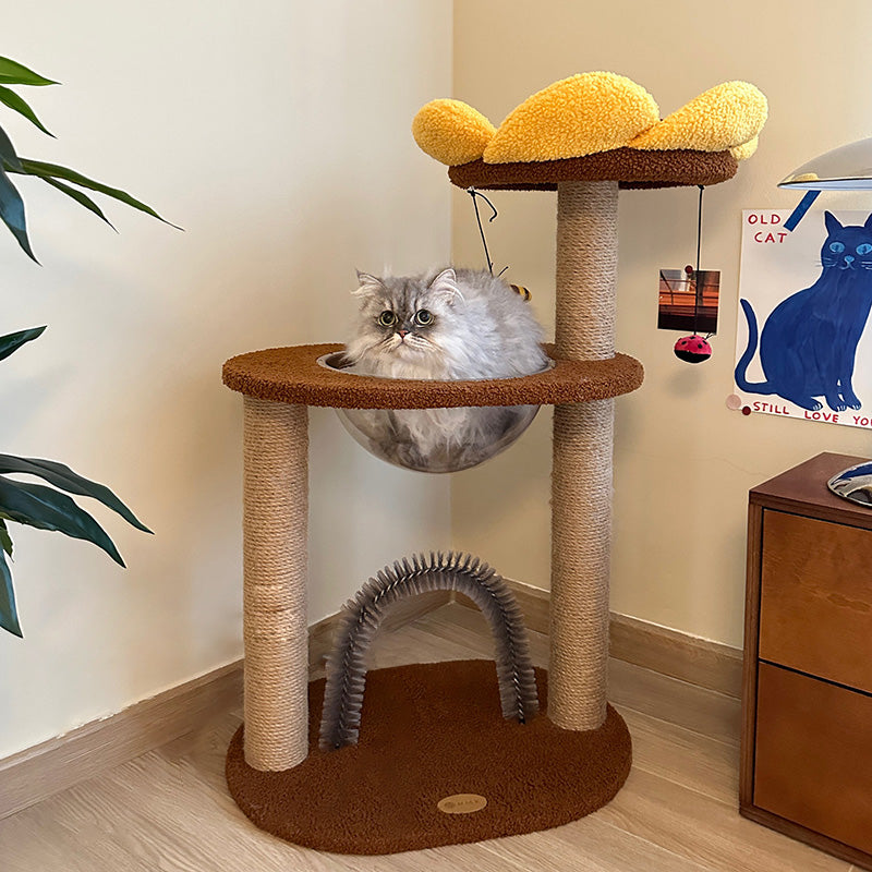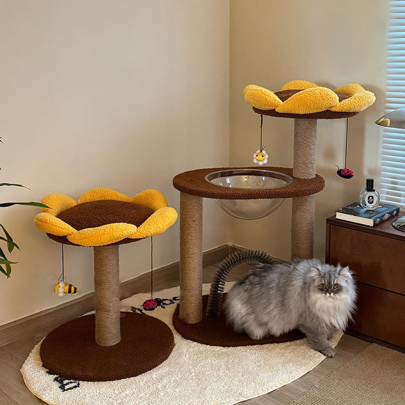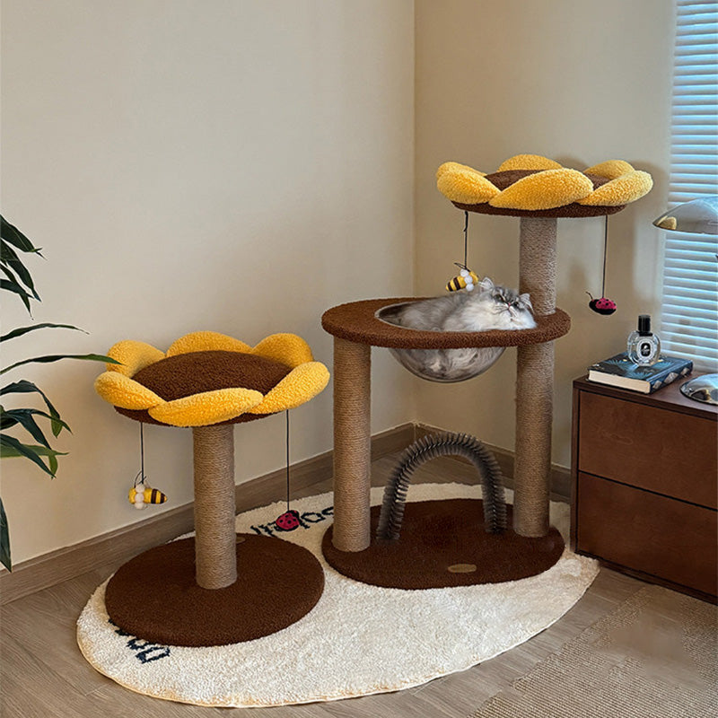 Bring a permanent ray of sunshine into your home with our sunflower-inspired cat tree, a vibrant "Botanical" activity center that radiates warmth and charm. This 3-level vertical playground features a sculptural design, with the blooming sunflower head serving as a plush, high-walled observation perch. Dressed in a cheerful palette of Golden Yellow and Earthy Brown, this boutique cat tower transforms a daily pet utility into a playful piece of "Modern Farmhouse" or "Boho-Chic" decor. Whether placed in a sun-drenched living room or a cozy bedroom corner, it provides a dedicated "Nature-Inspired" sanctuary that satisfies your cat's instinct to climb, survey, and lounge in style.