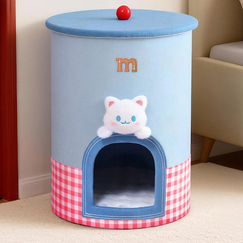 Contemporary Creative Round Polyester Denim Velvet Fabric Storage Cat Bed For Living Room