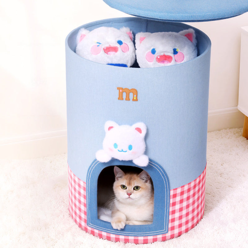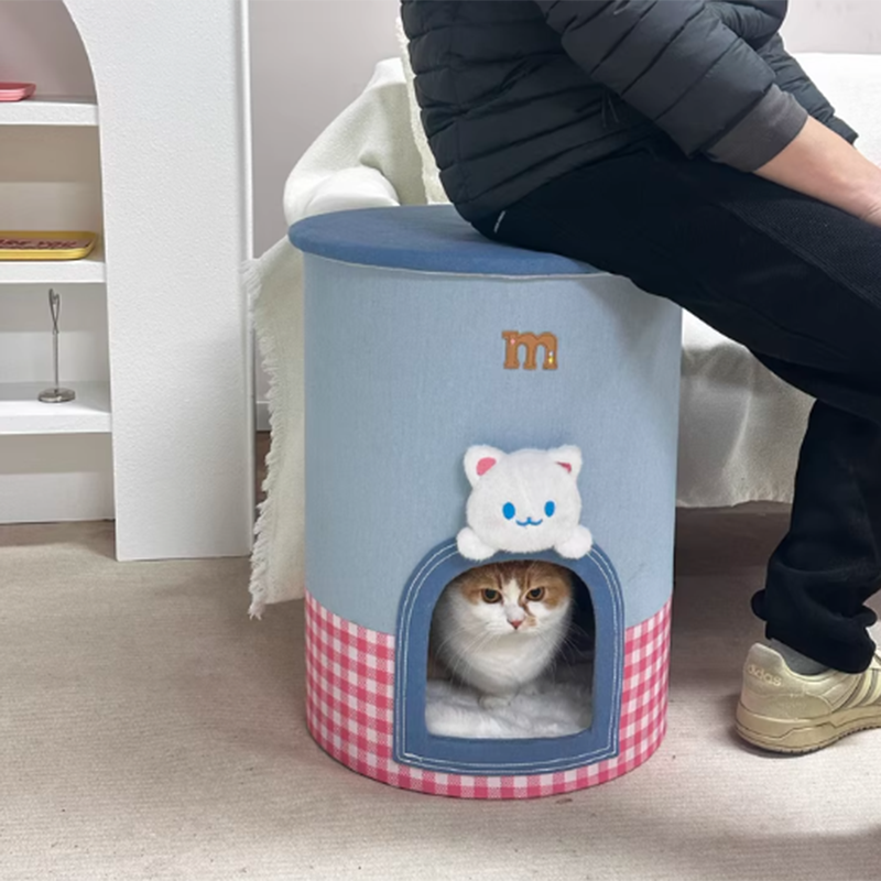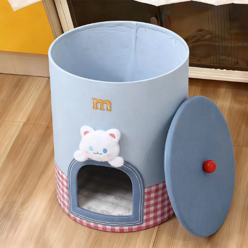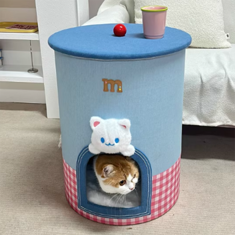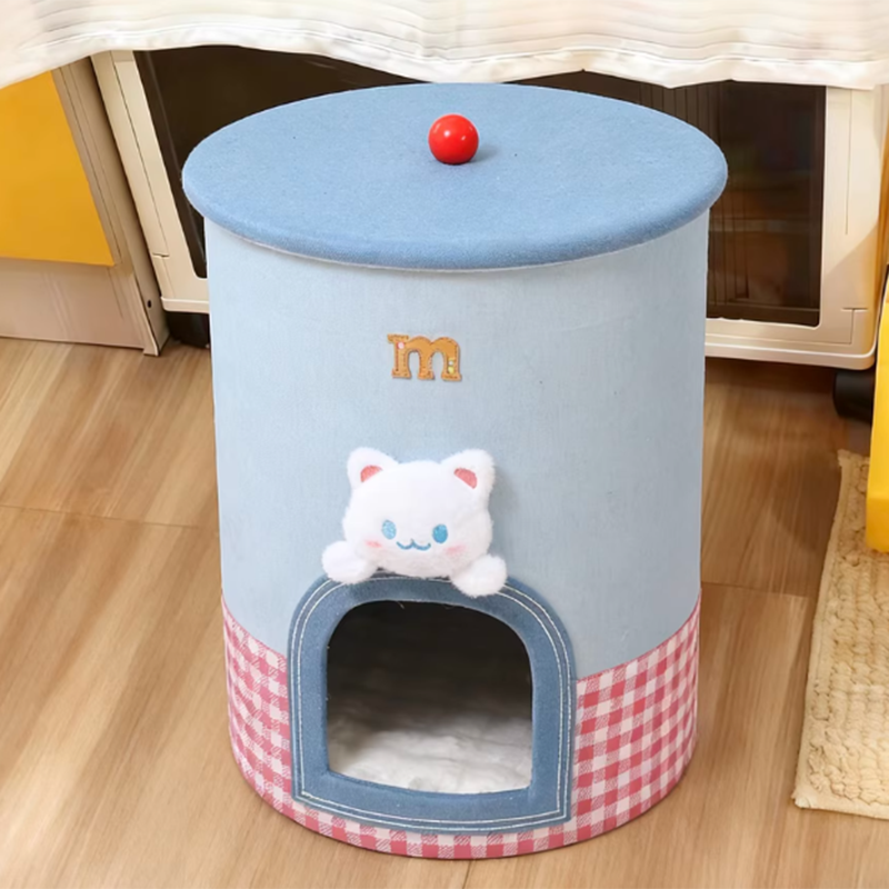 Maximize your square footage with the Dual-Haven, a revolutionary 2-level cat condo barrel that bridges the gap between high-end pet furniture and smart home organization. Engineered for the modern "Compact Living" lifestyle, this multi-functional unit features a dual-tier architecture: a private, "Cloud-Touch" lower hideout for your cat’s deep-sleep recovery, and a versatile upper storage compartment perfect for stowing pet toys, blankets, or household essentials. Available in a trendy Denim Blue and Soft Rose Pink, this chic circular silhouette serves as a stylish side table or nightstand, making it the ultimate "Space-Saving Hero" for North American apartments, studios, and cozy bedrooms.