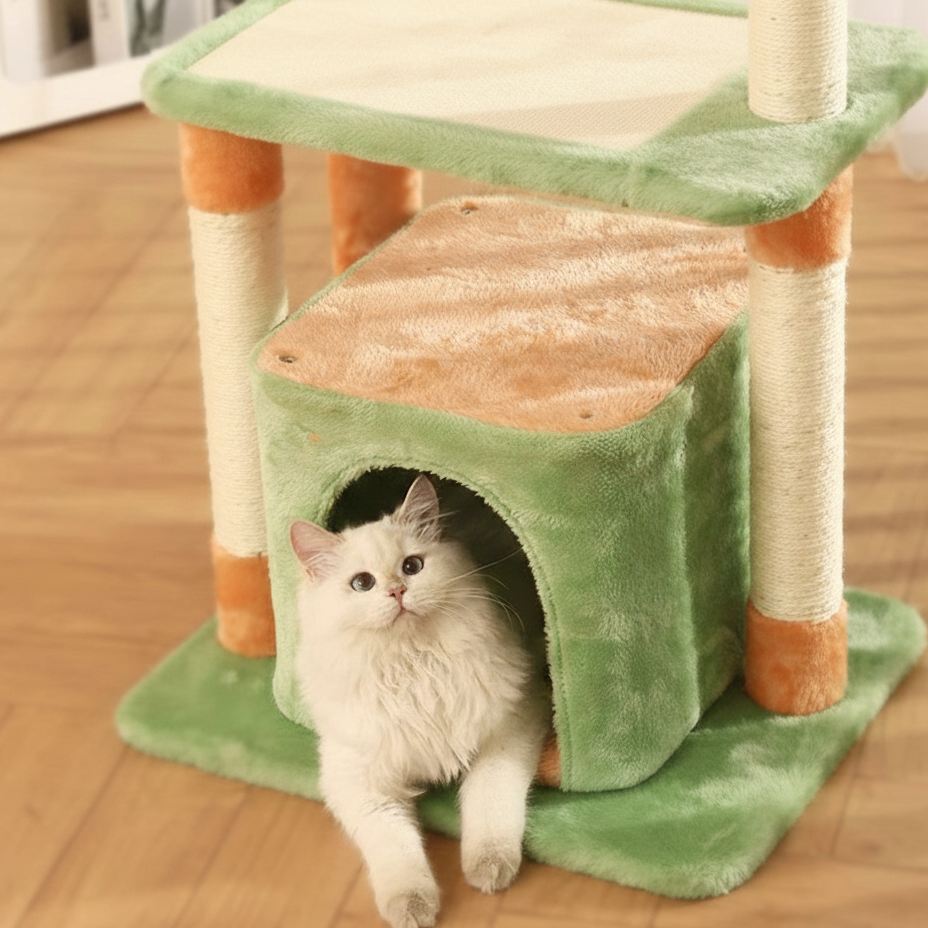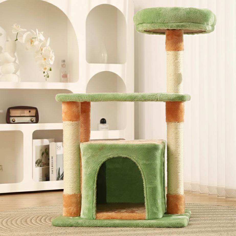 Brighten up your home and energize your cat’s day with the Citrus Grove, a vibrant 3-level activity center designed for the modern "Multi-Cat" lifestyle. This compact vertical tower features a refreshing Zesty Orange and Forest Green colorway, turning a standard pet utility into a playful "Pop-Art" accent for your living room or bedroom. The clever architecture includes a secluded ground-floor "Nap Grotto" for high-security sleep, a mid-level play zone, and an elevated observation deck for curious observers. It is the ultimate "Small-Space Hero" for apartments, providing a comprehensive all-in-one sanctuary that satisfies every feline instinct from climbing to burrowing.