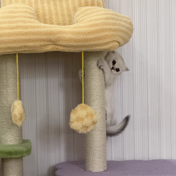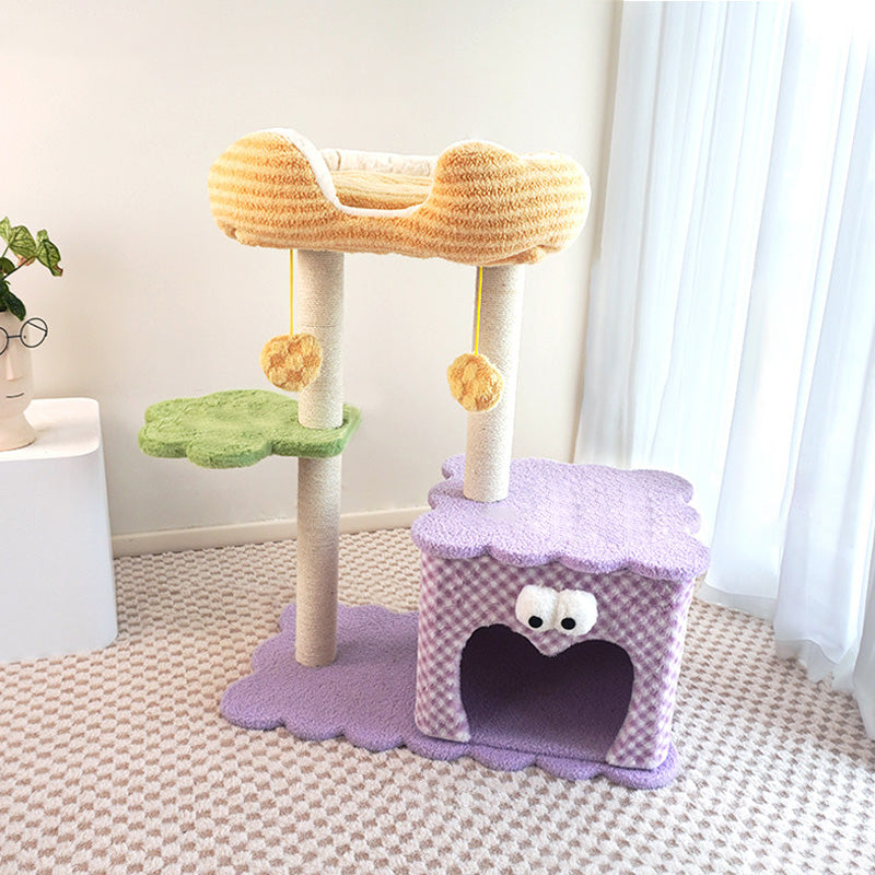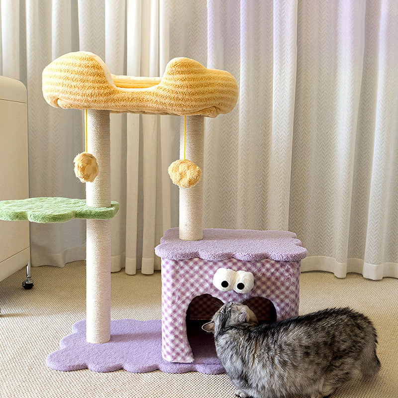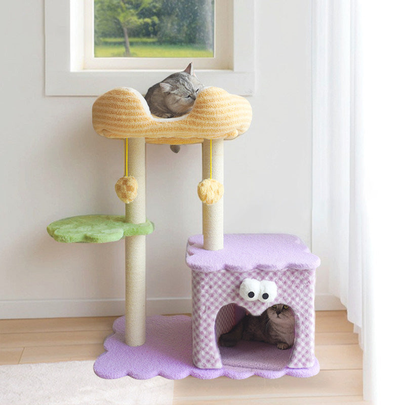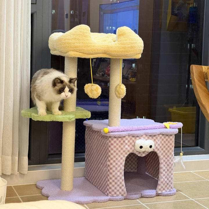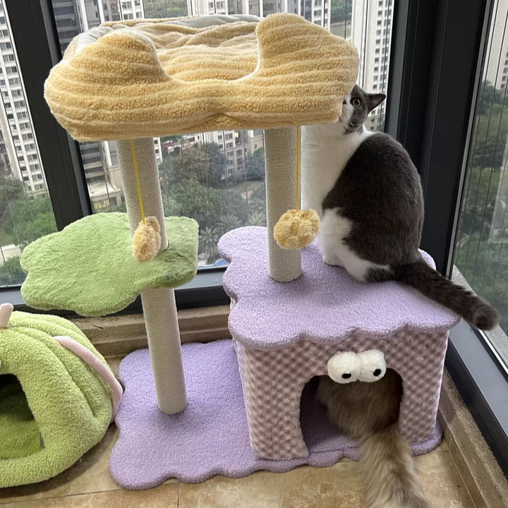 Infuse your home with a burst of playful energy with our multi-level "Kaleidoscope" cat tree, a masterpiece of modern color-blocking and practical design. This 3-tier vertical activity center features a high-contrast palette of Zesty Yellow, Regal Purple, and Deep Meadow Green, designed to serve as a vibrant accent in contemporary North American apartments or "Eclectic-Chic" interiors. The standout feature is the innovative removable condo cover, which allows pet parents to maintain a pristine, allergen-free environment with effortless ease. Whether tucked into a sunlit bedroom nook or as a statement piece in your living room, this tree provides a dedicated sanctuary for your pet while enhancing your home's unique personality.