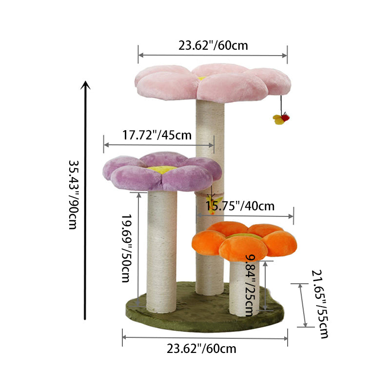 Brighten your home and satisfy your cat’s natural instincts with The Bloom Garden, a vibrant 3-tier flower-shaped cat tree that brings a whimsical "Dopamine Decor" pop to any room. Designed with a playful botanical silhouette, this multi-level sanctuary features lush, oversized floral perches that serve as both comfortable napping cradles and elevated observation decks. Whether you are styling a "Grandmillennial" living room or a modern "Color-Pop" bedroom, this compact activity center offers a 3-in-1 solution for climbing, scratching, and lounging, transforming your space into a cheerful feline meadow.