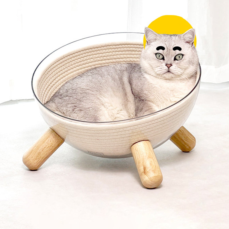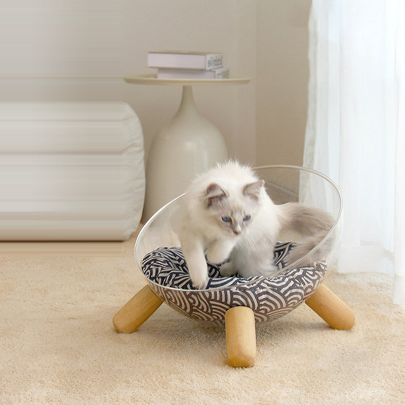Contemporary Scandinavian Round Rubberwood PET Iron Clear Cat Bed For Bedroom