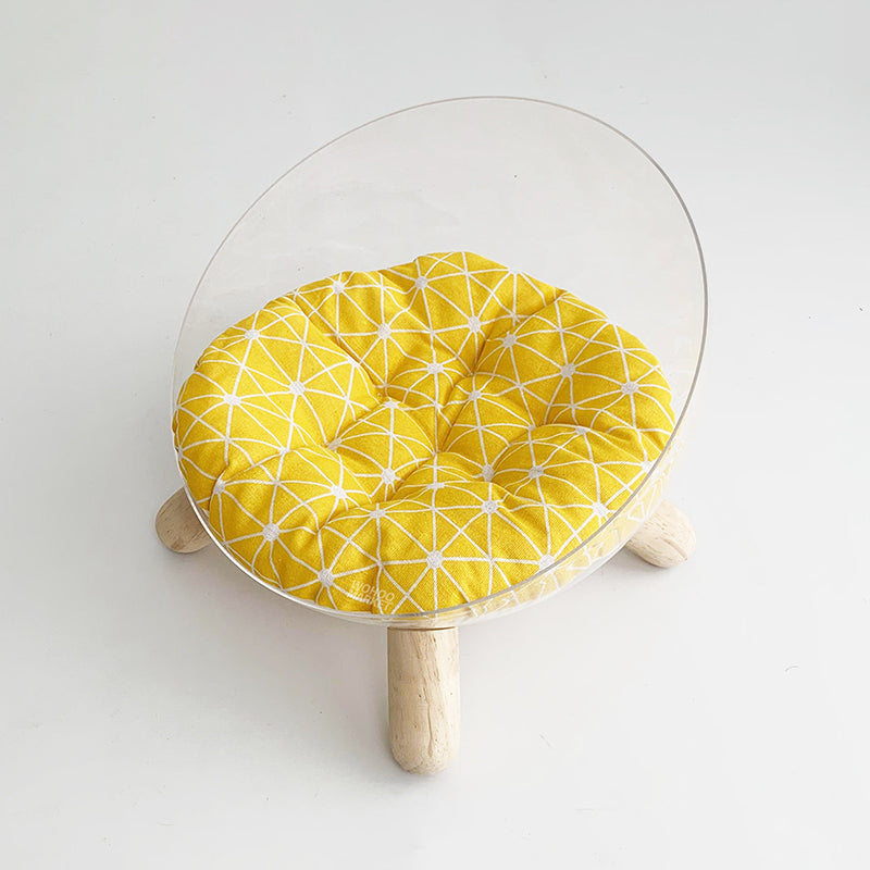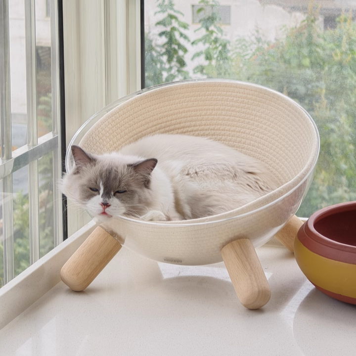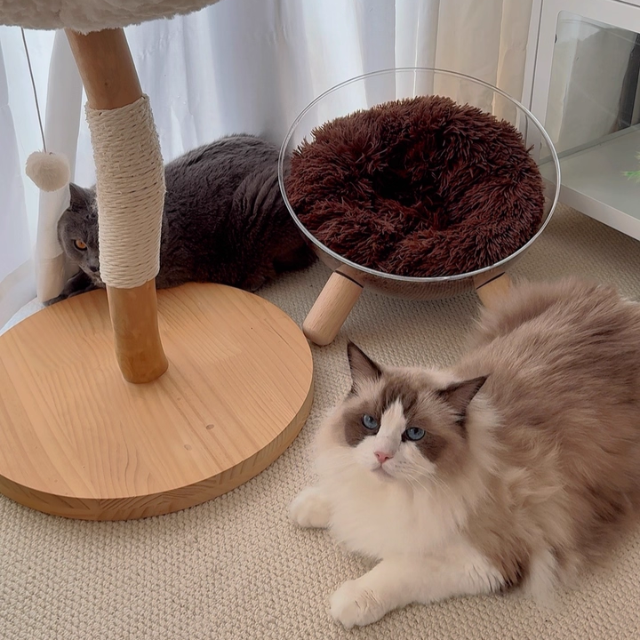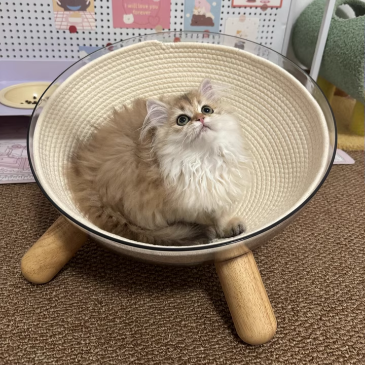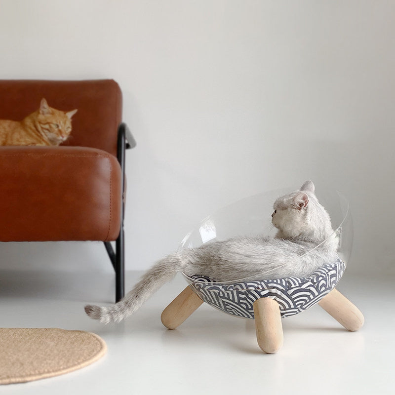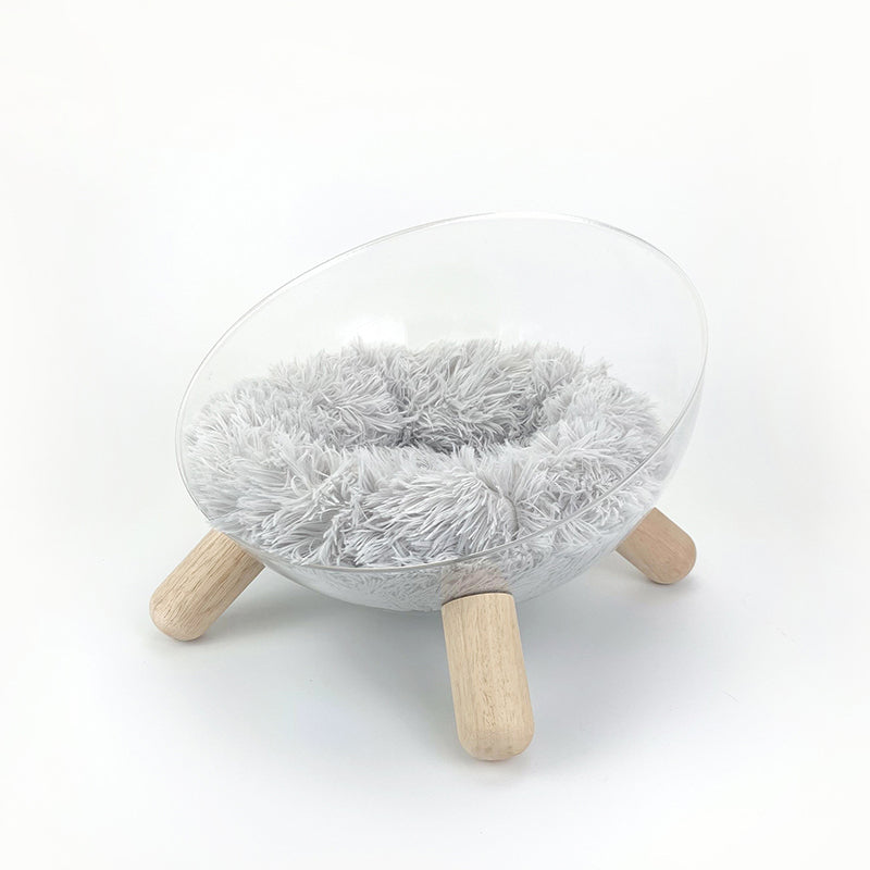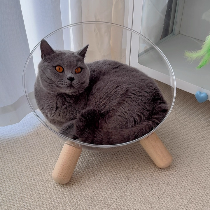 Redefine your pet’s lounging experience with the Starlight Sphere, a breathtaking hemispherical cat bed that merges "Space-Age" futurism with "Mid-Century Modern" warmth. This avant-garde sanctuary features a crystal-clear, high-impact PET acrylic bowl, offering your feline a panoramic 360° view of their surroundings while providing you with the ultimate "under-paw" photo opportunity. Elevated by tapered solid rubberwood legs, this bed moves away from bulky traditional floor cushions to create a "Floating" architectural silhouette. It’s the perfect statement piece for North American "Minimalist" or "Contemporary" interiors, transforming a simple pet bed into a piece of high-end home gallery art.