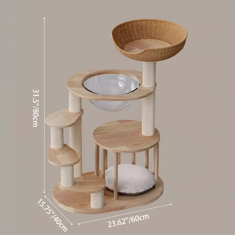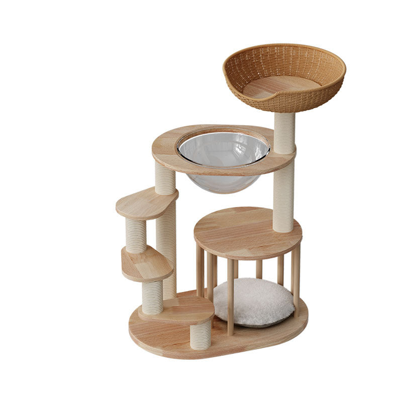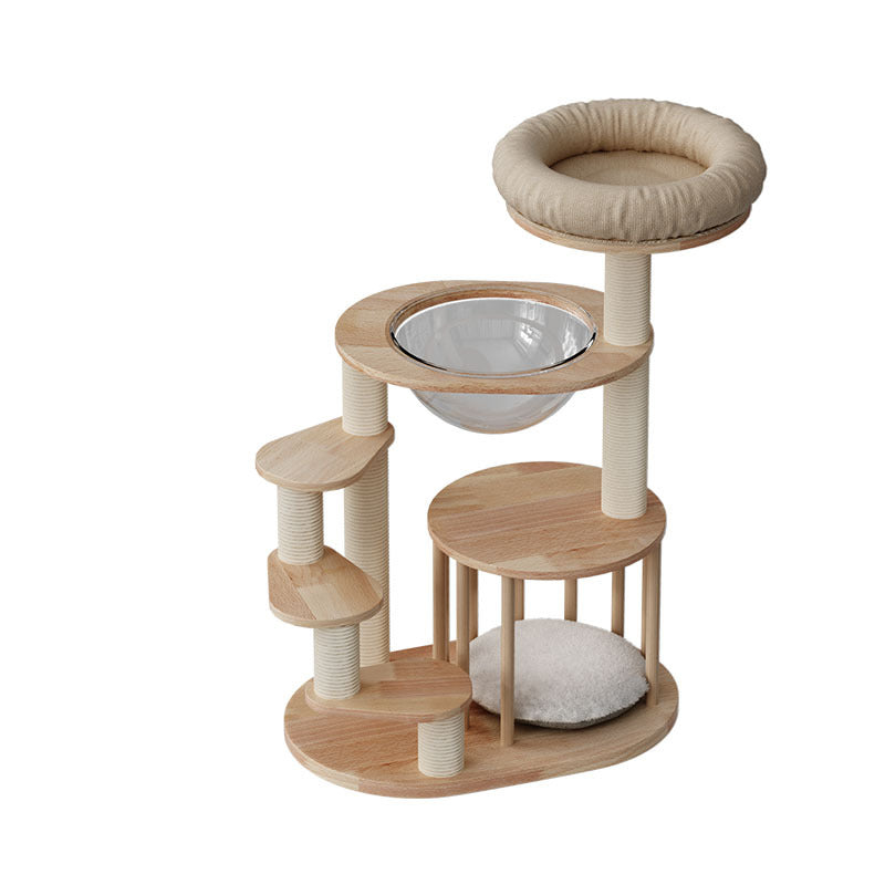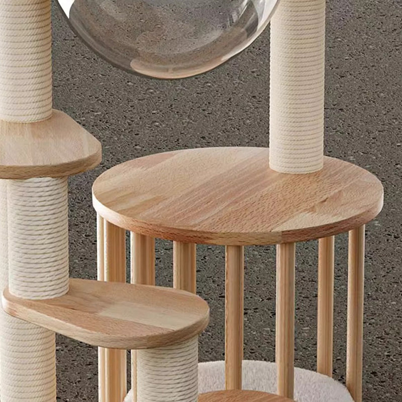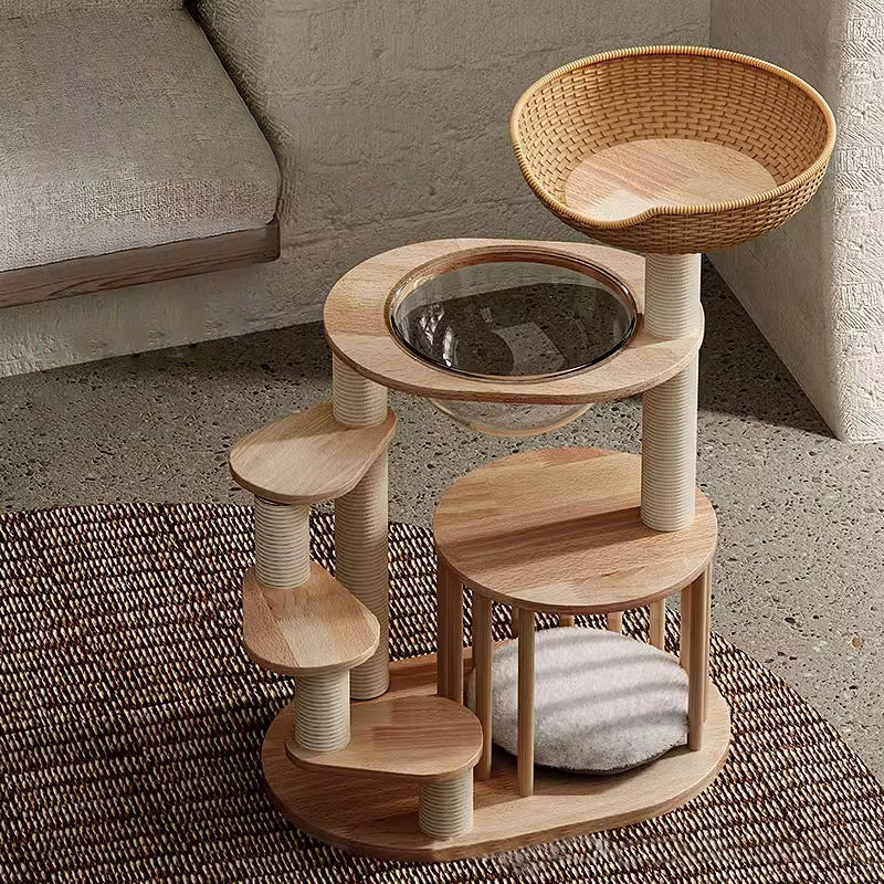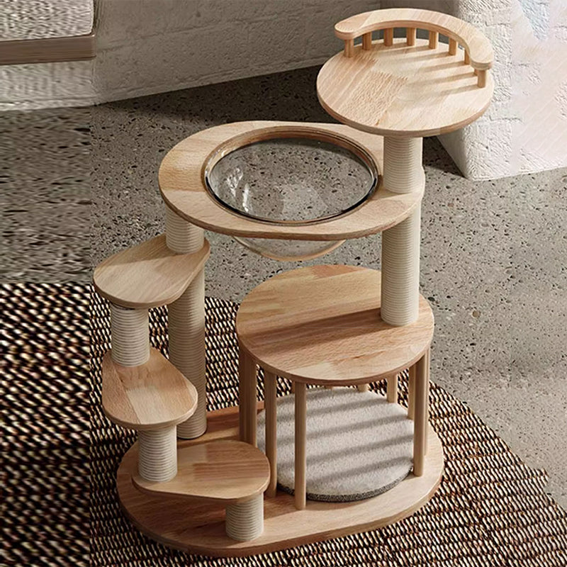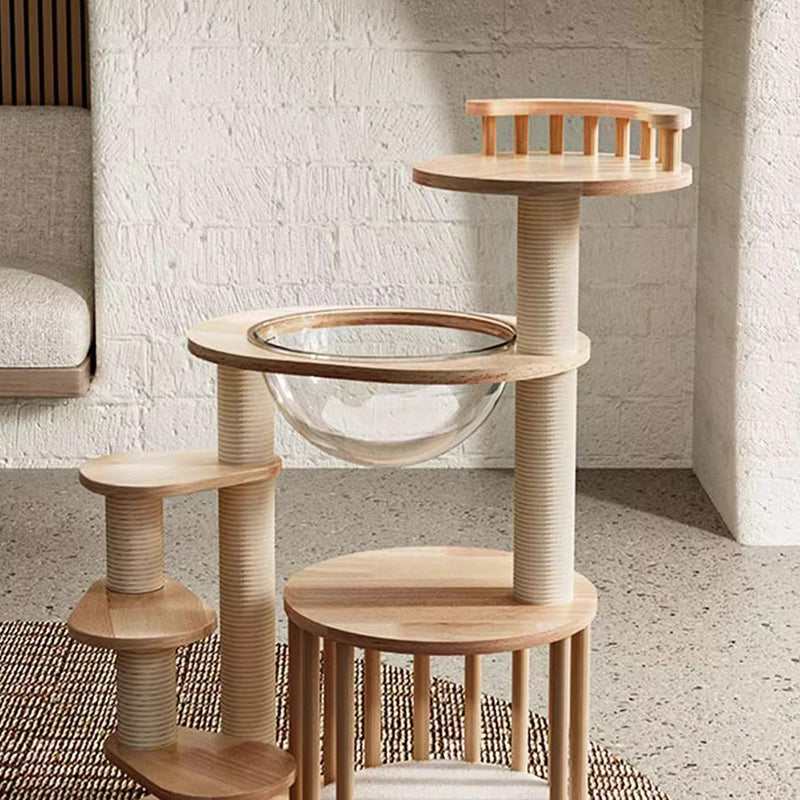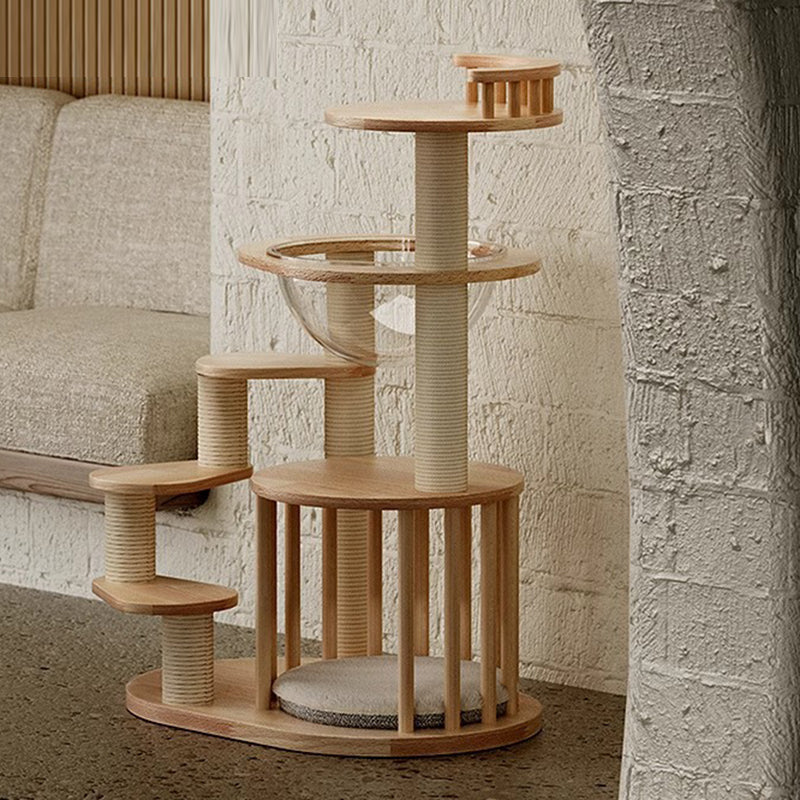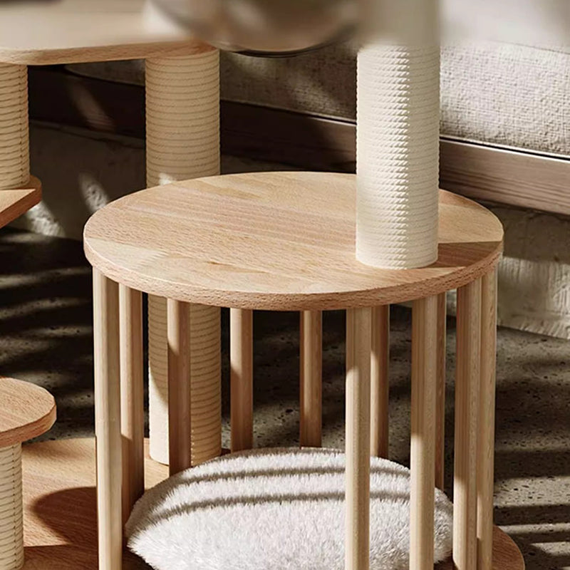 Thoughtfully engineered for accessibility, this contemporary Nordic 4-tier cat tree is the ultimate sanctuary for Munchkin cats, kittens, and senior felines. Featuring a specialized low-profile, easy-climb structure, each platform is strategically spaced to allow short-legged breeds to navigate vertical heights with confidence and ease. Precision-crafted from premium solid rubberwood, this tower provides a heavy-duty, wobble-free foundation that far surpasses standard carpeted alternatives. Its minimalist natural wood tones and sleek architectural lines ensure it functions as a "designer furniture piece" that enhances the aesthetic of any modern North American living room or bedroom.