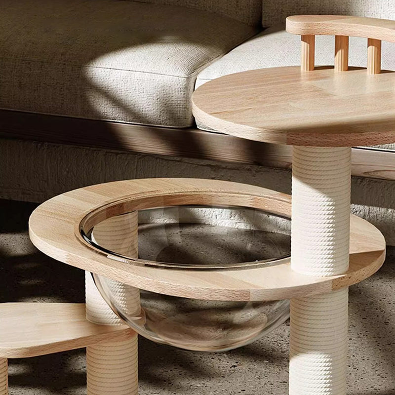 This spacious multi-level retreat is a masterclass in functional "pet-centric" design, offering a perfect balance of playful platforms and cozy sleeping spots. The structural supports are tightly wrapped in durable, eco-friendly paper rope, providing a gentle yet resilient scratching surface that protects your upholstery without the mess of traditional sisal shedding. Elevated by modern acrylic details, the tower offers crystal-clear observation points for your pets to survey their kingdom. Whether for a multi-cat household or a single companion, this accessible "vertical gym" provides a safe, inclusive environment for exploration and rest.