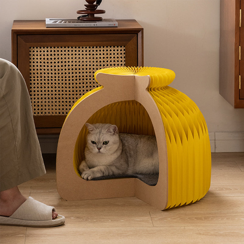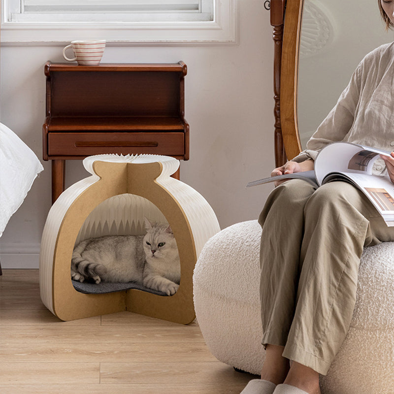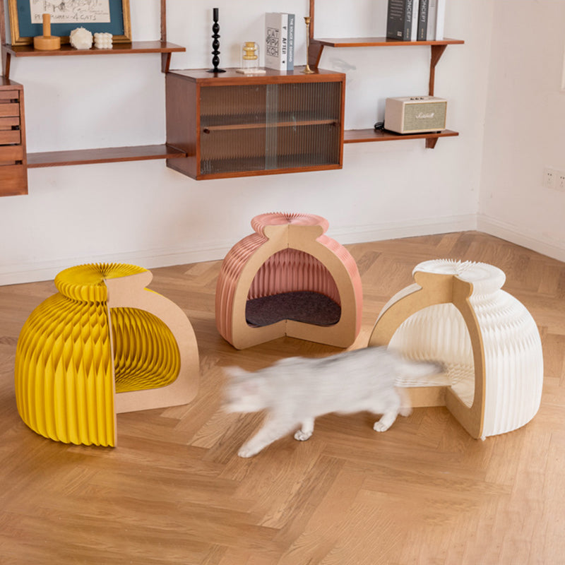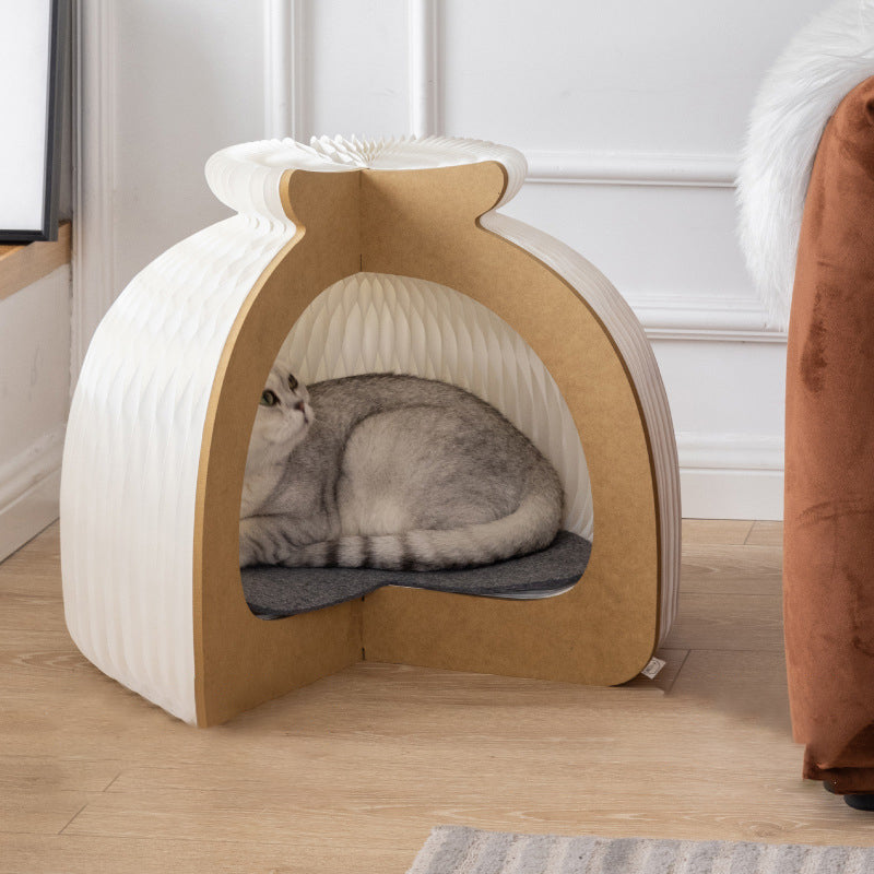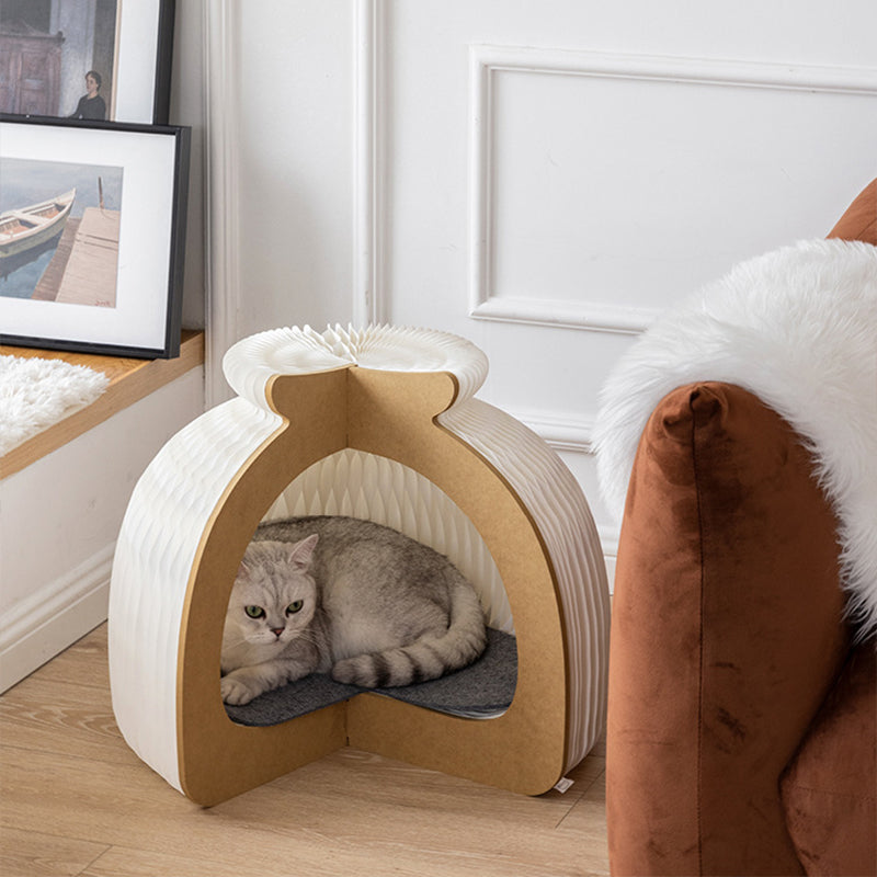 Designed for the "on-the-go" pet parent and the space-conscious urbanite, this bed features an innovative foldable and portable structure. The accordion-style design allows it to expand into a sturdy pod in seconds or collapse into a flat, slim profile for effortless storage and travel. Inside, your cat will find a premium soft felt cushion that provides a plush, velvety retreat for deep, restorative sleep. Whether you're looking for a "minimalist hideaway" or a pop of color for your decor, this eco-friendly cat cave offers the perfect blend of high-end aesthetics and cozy utility.
